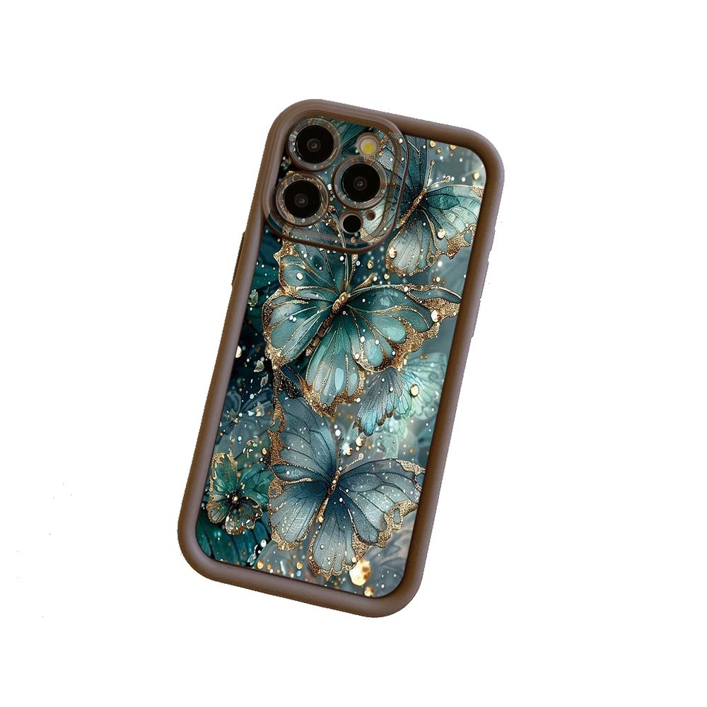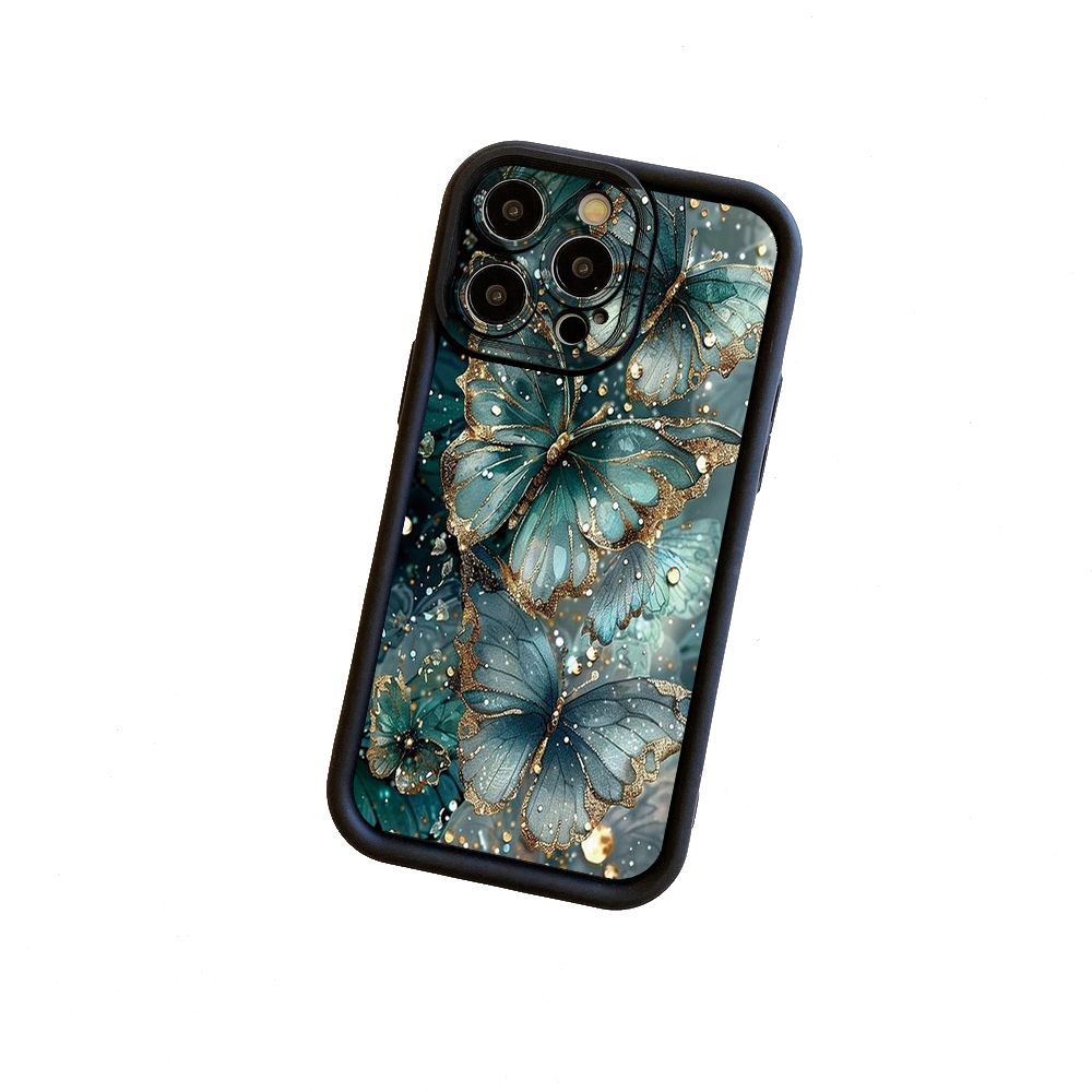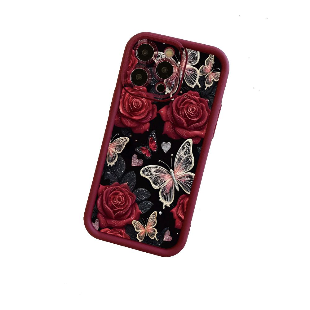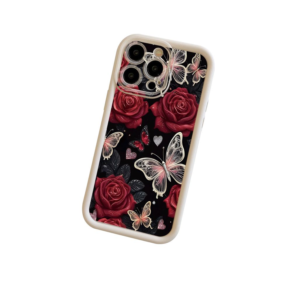 for iPhone 15 Pro Max 14 Plus 13 12 11 XR 8 7 SE 2022 XS Jadeite Rose Butterfly Full Protective Phone Case Anti Drop Cover