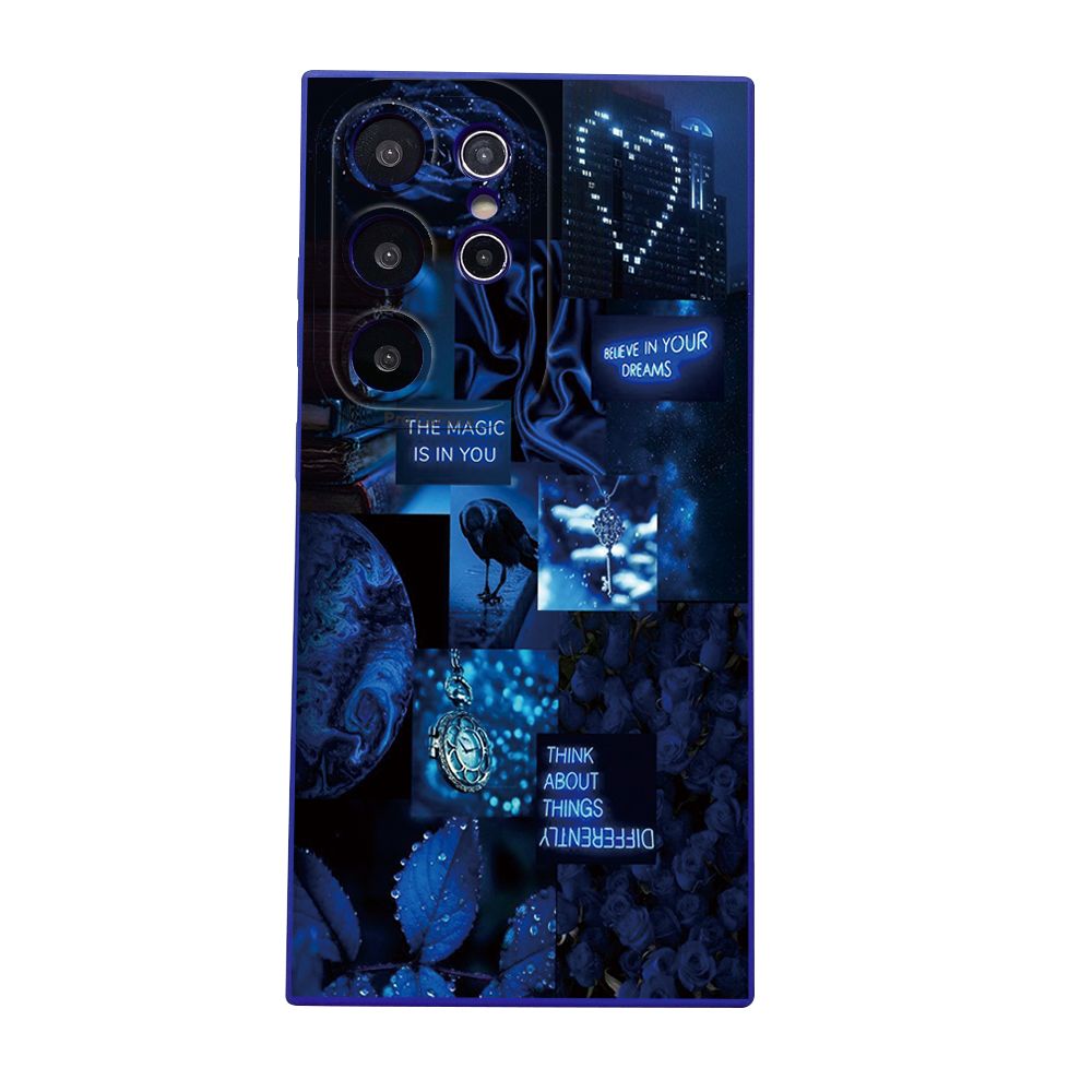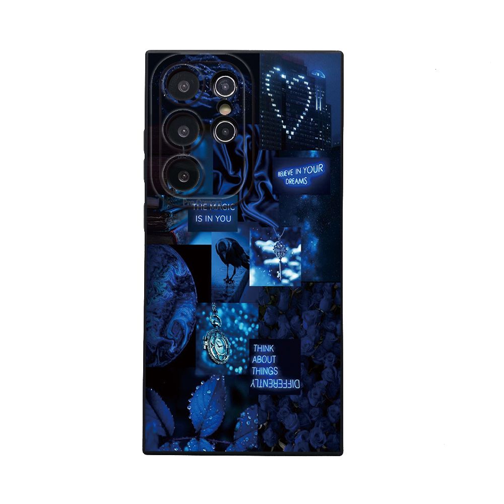 For Samsung Galaxy S24 S23 Ultra S22 Plus Note 20 S21 FE S20 Blue Art Flower Full Protective Case Anti Drop Cover