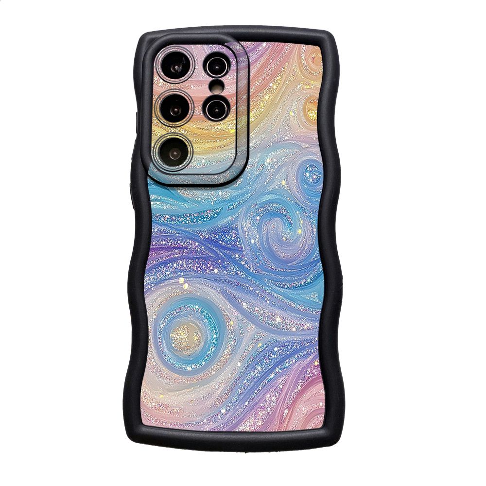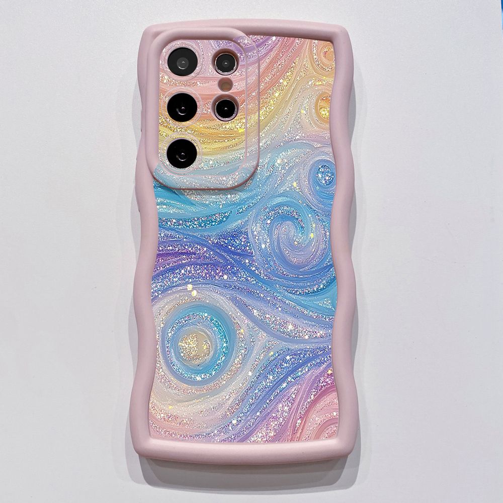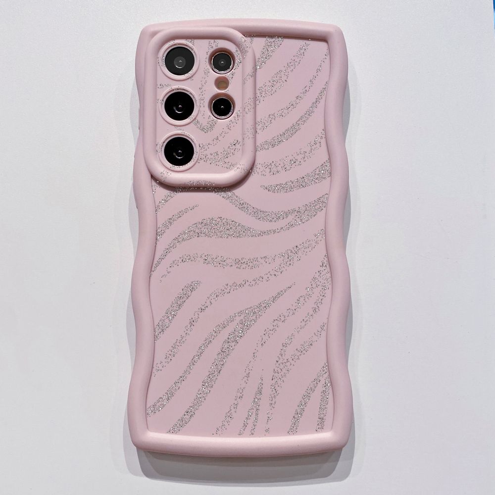 For Samsung Galaxy S24 S23 Ultra S22 Plus S21 FE S20 Glitter Stripe Print Wave Frame Phone Case Anti Drop Cover