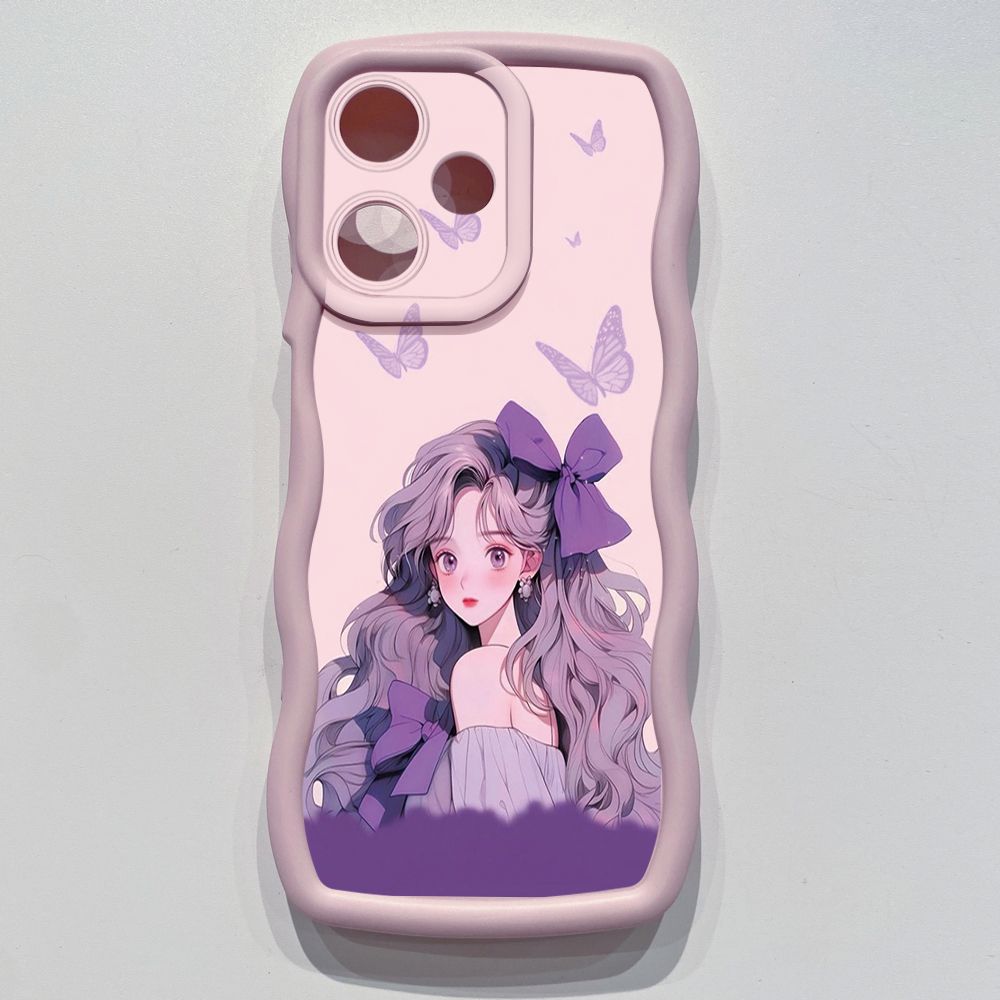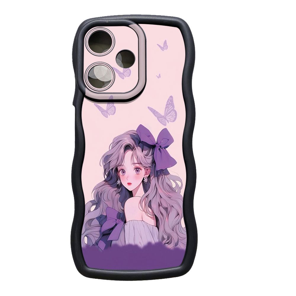 For OPPO Realme C67 C53 C51 Note 50 C21Y C25Y C33 C30 C35 9i Purple Butterfly Flower Girl Wave Frame Phone Case Anti Drop Cover