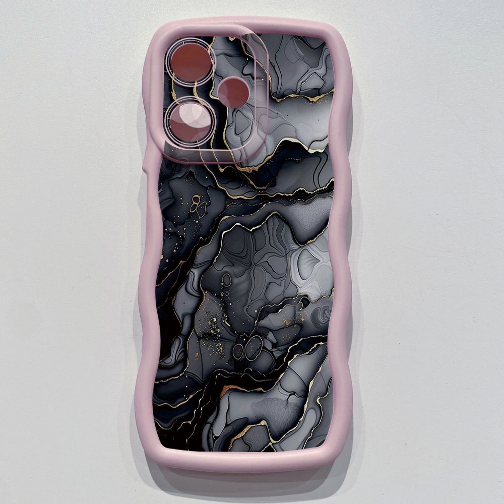 For OPPO Realme C67 C53 C51 Note 50 C21Y C25Y C33 C30 C35 9i Black Pink Marbling Wave Frame Phone Case Anti Drop Cover
