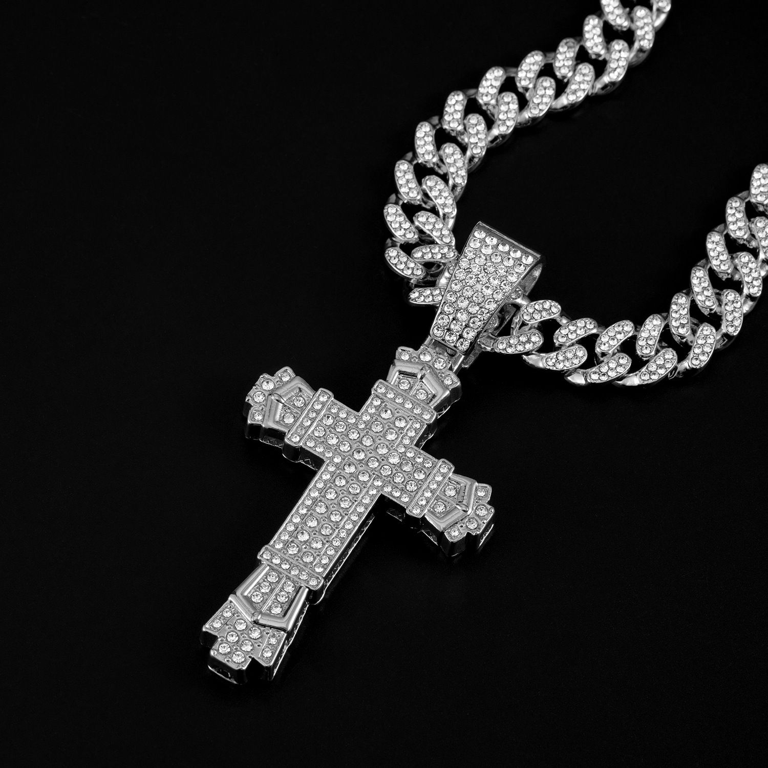 iced cross pendant necklace hip hop fashion necklace jewelry for men/women cross pendant cuban chain necklace for man/woman
