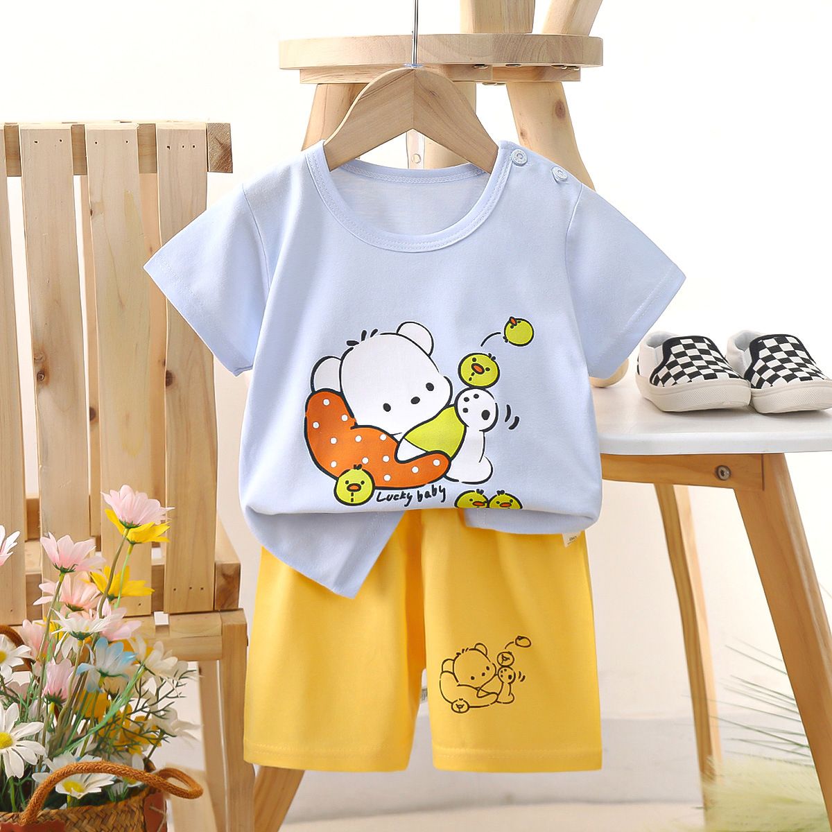 Children's short sleeved shorts set pure cotton boys' T-shirt baby summer children's clothing girls' shorts baby clothes summer clothing