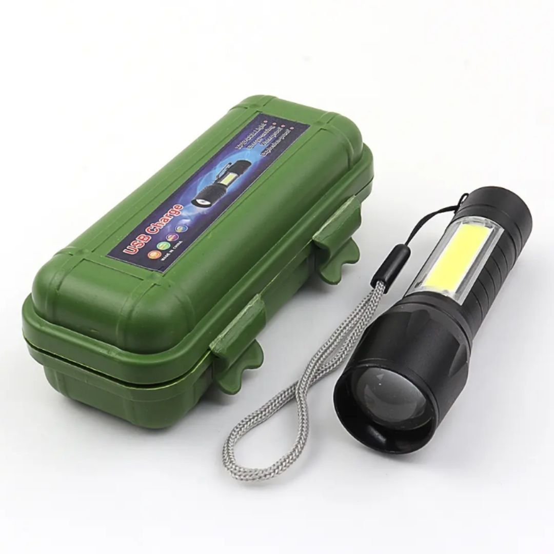 Mini Zoomable USB Rechargeable Pocket Flashlight COB LED Tactical Torch with Hard Case 2-in-1 Gift for Men Every Day Carry Spot Light Survival Kit Camping Powerful Charging Emergency Super Bright