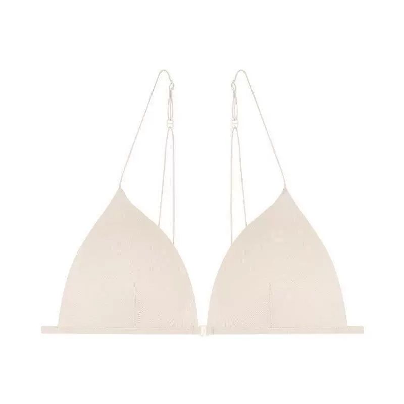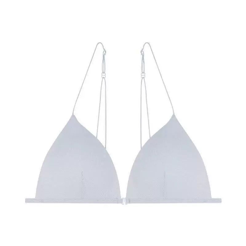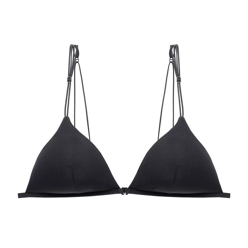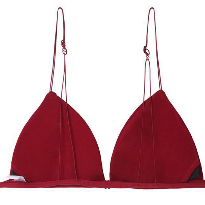 Women's sexy front-clasp French triangle cup wireless thin cotton underwear with ultra-fine shoulder straps and a backless bra set