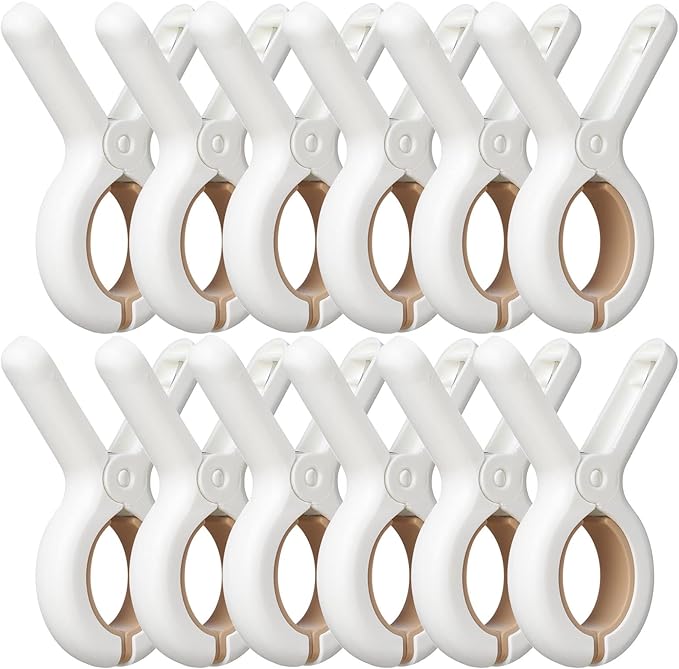 12 PCS Plastic Clothespins Heavy Duty Clothes Pins Windproof Clamps Beach Blankets Clothes Pegs with Strong Anti-Rust Springs, Blankets to Dry on Clothesline Hanging Rack Quilt Drying Clip for Laundy