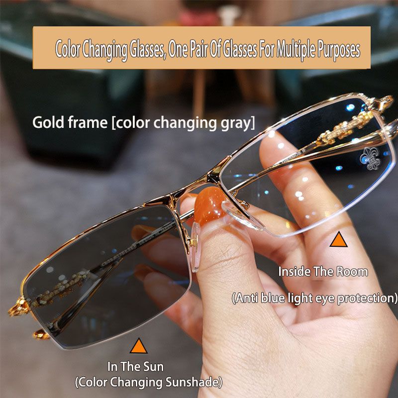 2025 New Photochromic Eyeglasses Anti Radiation Metal Frame Women Men Glasses INS Fashion Anti Blue Light Transitional Sunglasses