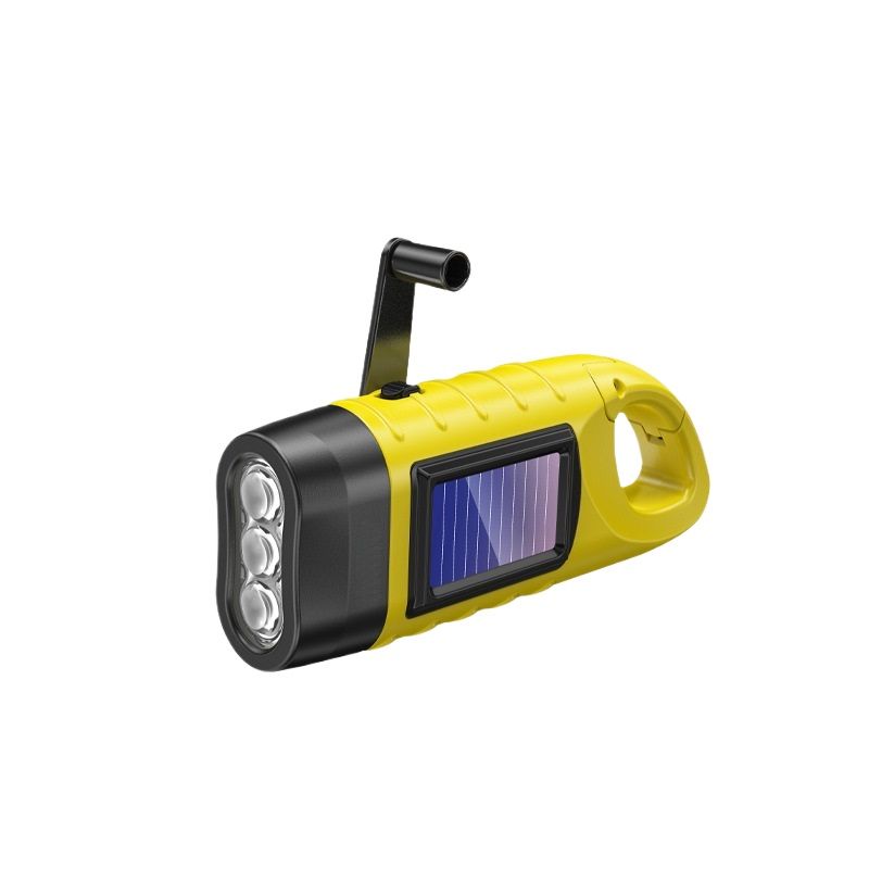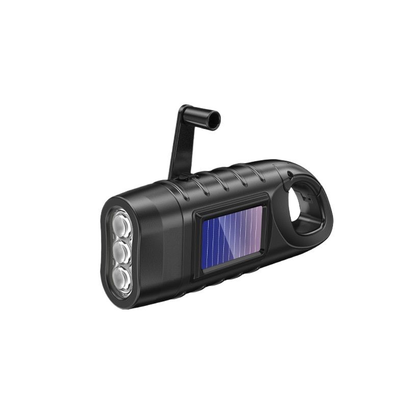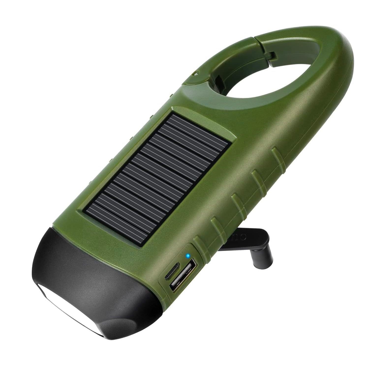 Hand Crank Solar Powered Flashlight, Emergency Rechargeable LED Flashlight with Dynamo Carbiner, Survival Flashlight, Quick Snap Carbiner Dynamo Flashlight Torch for Outdoor Sports