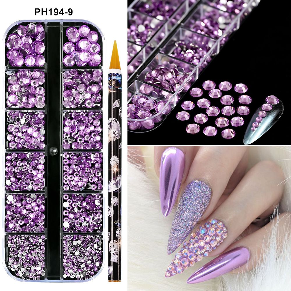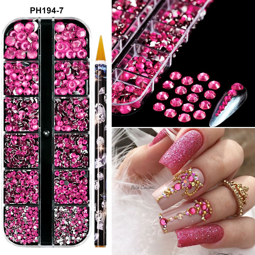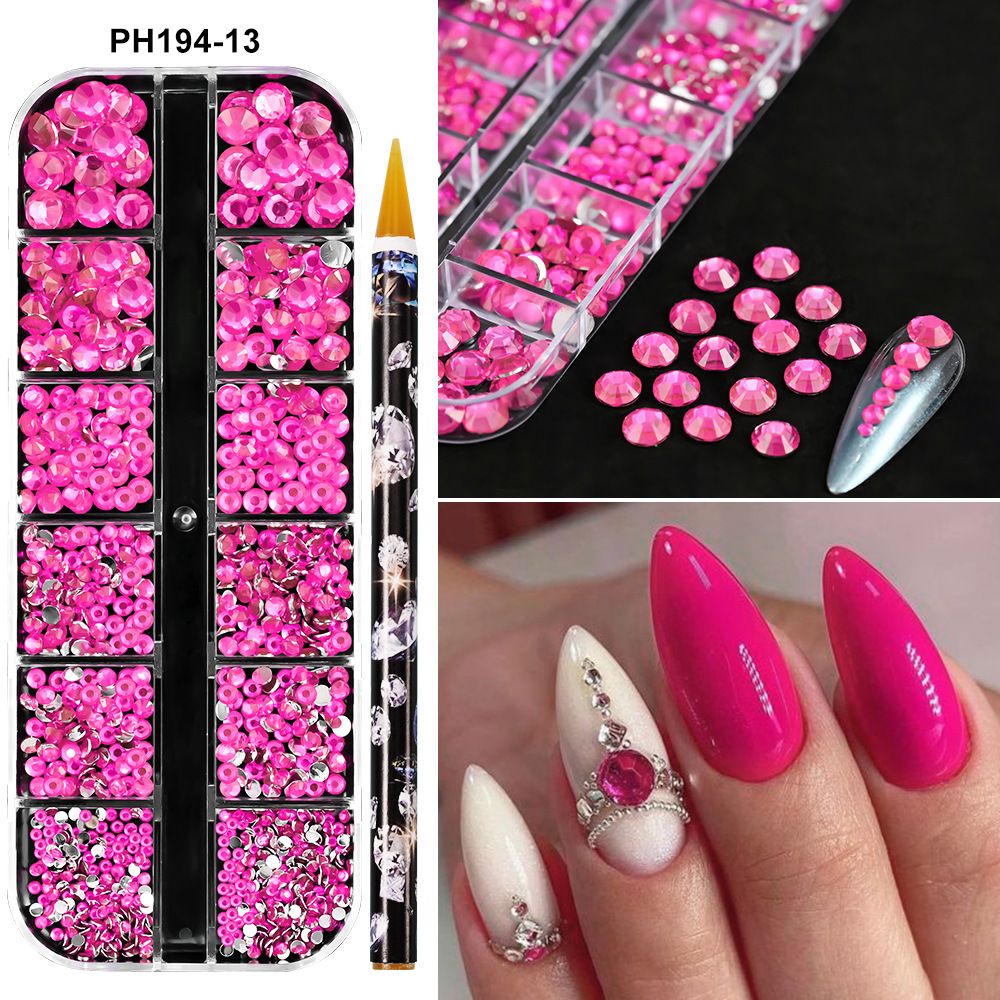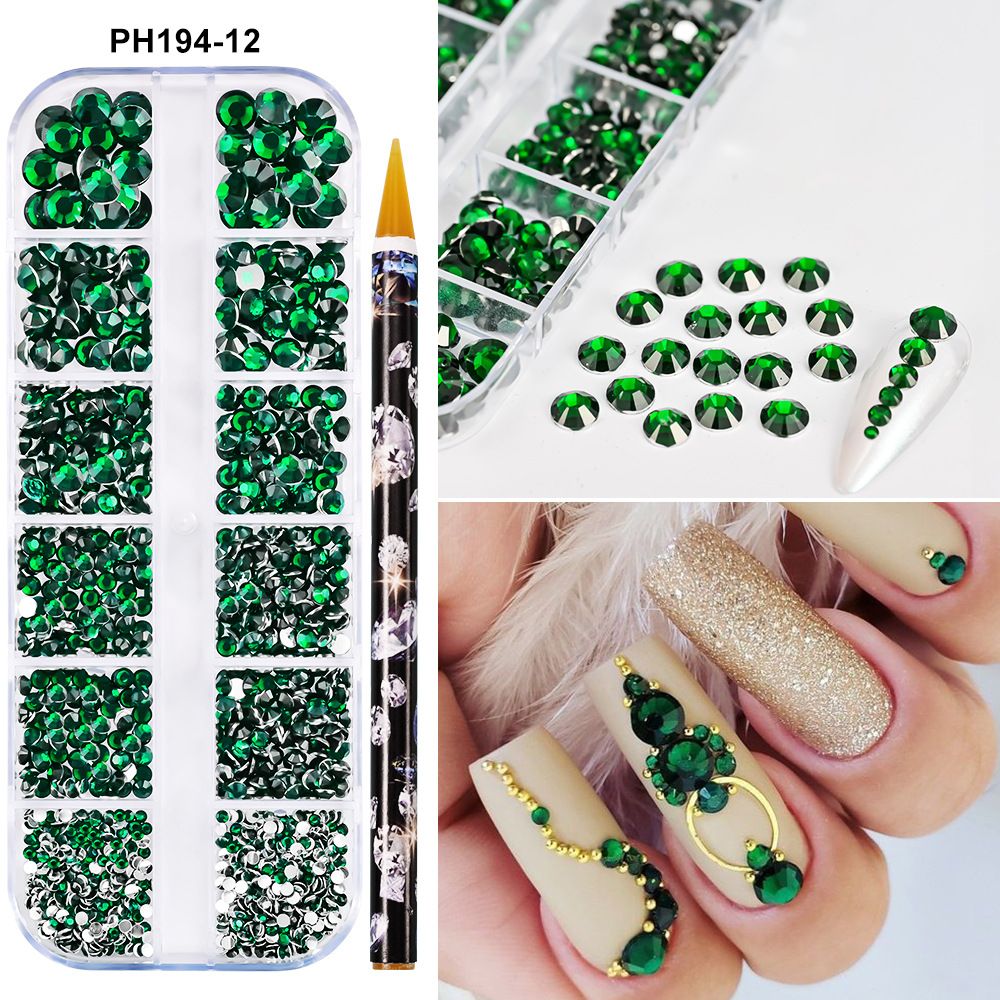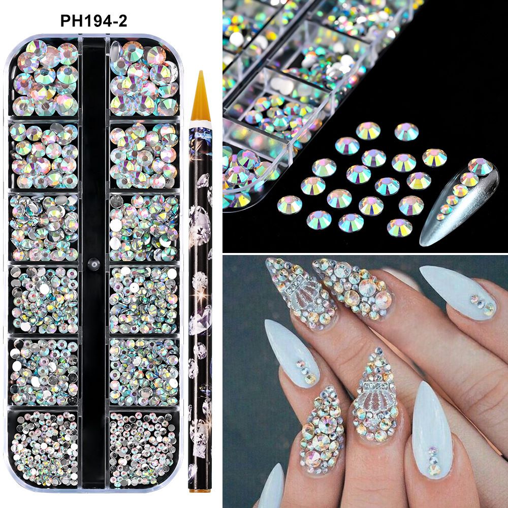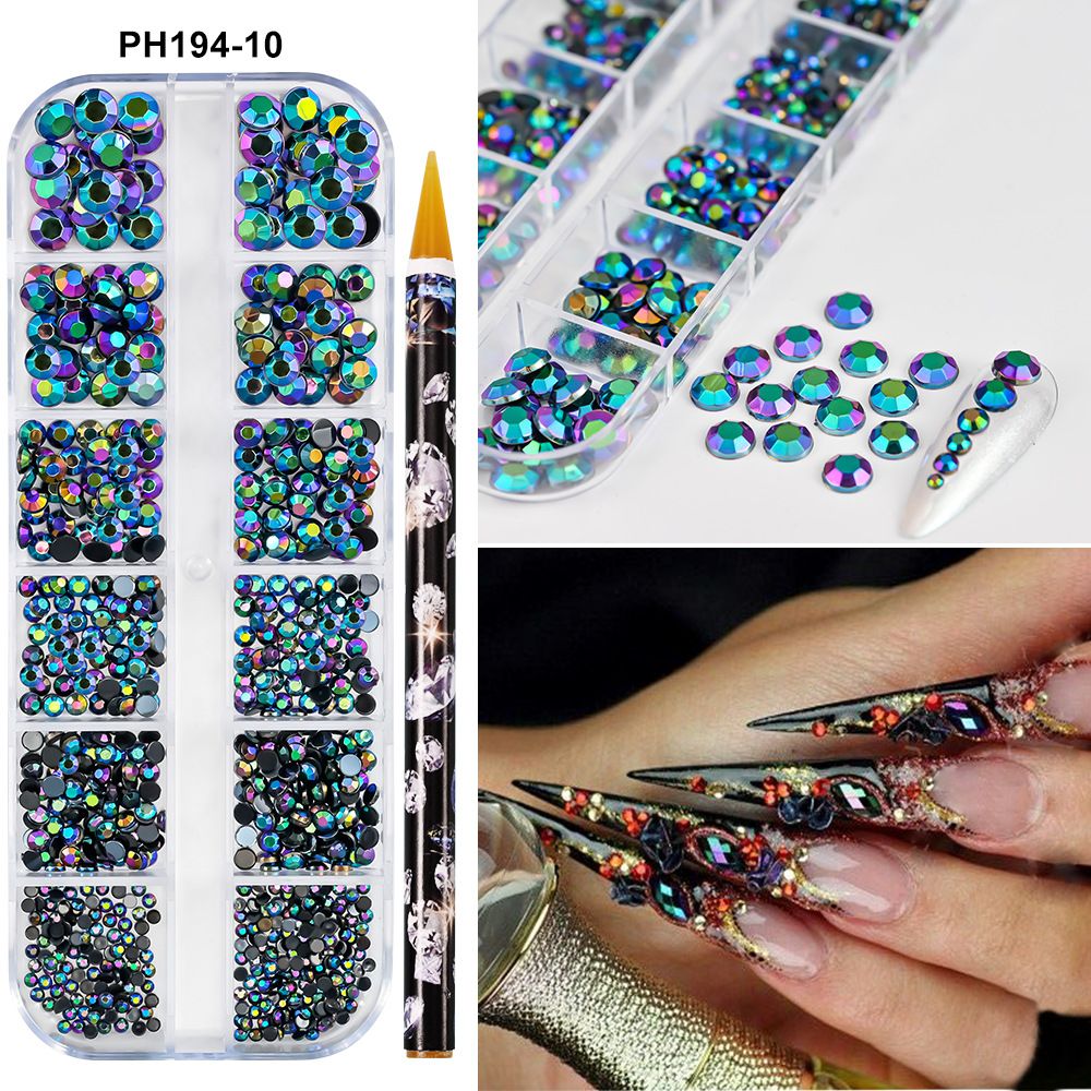1Box(12Grids) 3D Colorful Round Nail Art Rhinestones Flatback Galss Diamond Gems Jewelry Nails Charms DIY Makeup Manicure Accessories