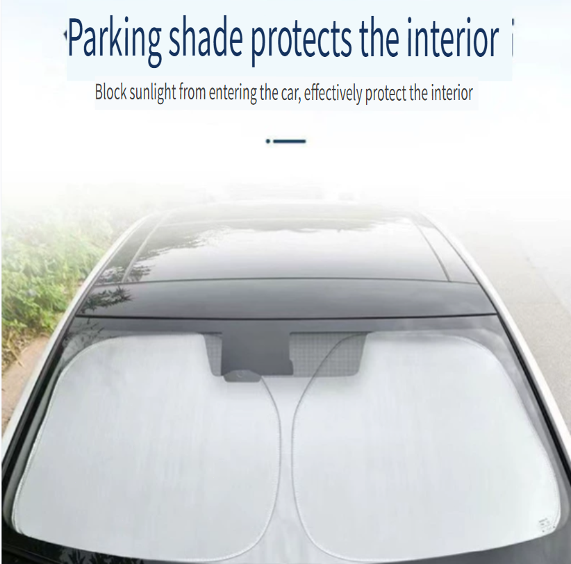 Car front window glass sunscreen sunshade, silver-coated double-ring titanium silver summer sunscreen heat insulation foldable sunshade cloth