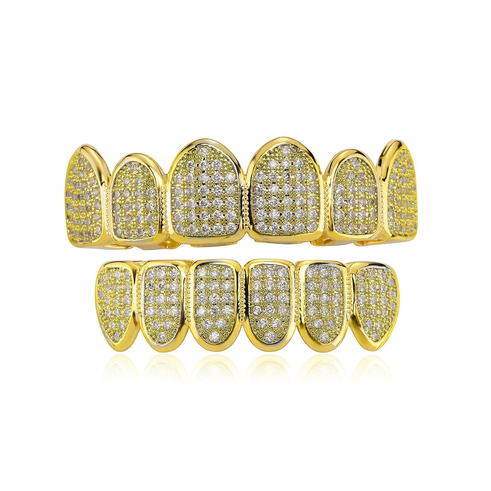 Iced Tooth/Teeth Grillz Caps with Full Handmade 5A + CZ diamond Hip Hop Teeth Grillz body Jewelry Accessories Gifts for Rapper Music Lovers