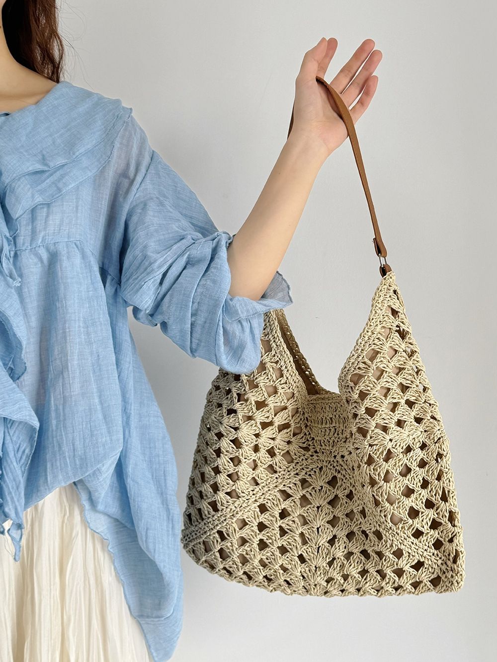 Women’s Crochet Hollow Out Beach Bag Woven Tote Large Capacity Shoulder Bag Summer Vacation Style Handbag for Travel, Holiday, Shopping, Casual Use