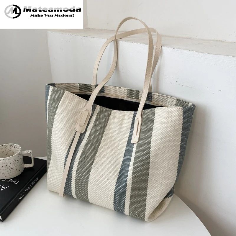 Mateamoda Stylish Vintage Striped Soft Canvas Tote Bag