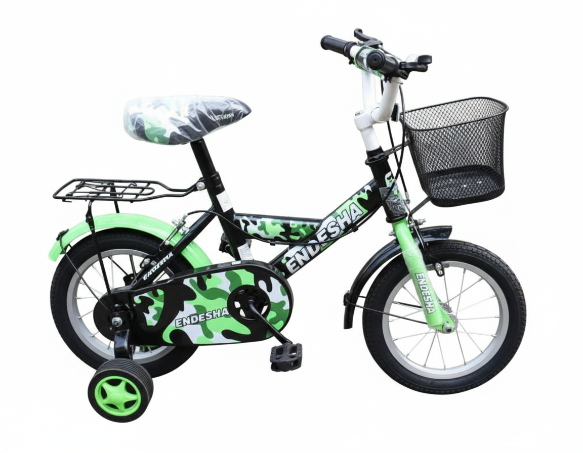 Endesha Size 12 Baby Bike with Side Mirror, Back Carrier & Front Metal Basket | Kids Bicycle for Ages 2-5 Years | Strong Alloy Frame & Safe Brakes