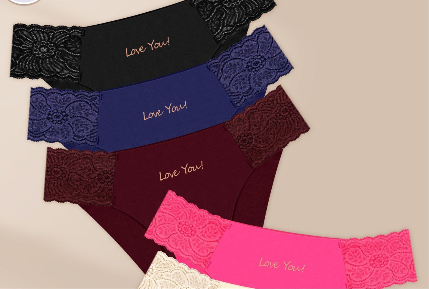 4-Piece Women's Underwear Set Briefs Lace Panties Comfortable Breathable Ice Silk Satin Seamless High-Waist Sexy Tummy Control & Butt Lifting Fashion Hot-Selling Sexy Printed underwear I love you