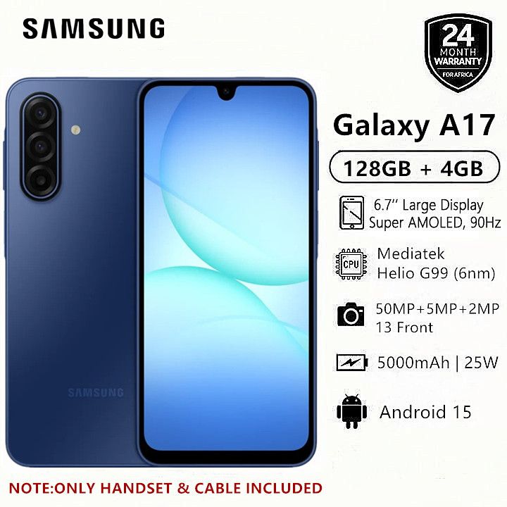 New Arrival Samsung Galaxy A17 128GB+4GB 6.7" Super AMOLED Display Mediatek Helio G99 50MP Triple Camera Android 15 IP54 Waterproof 5000mAh 25W Type-C Charge AI Smart Phones phone