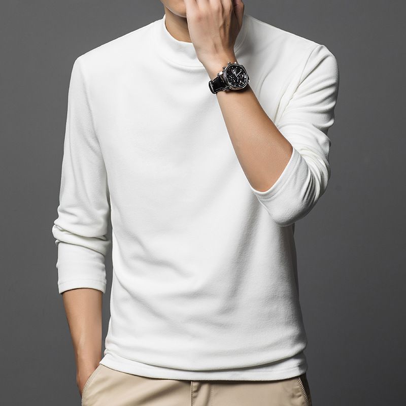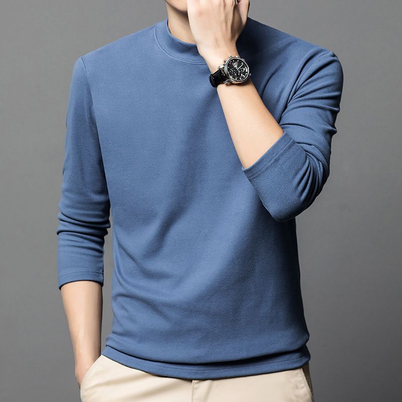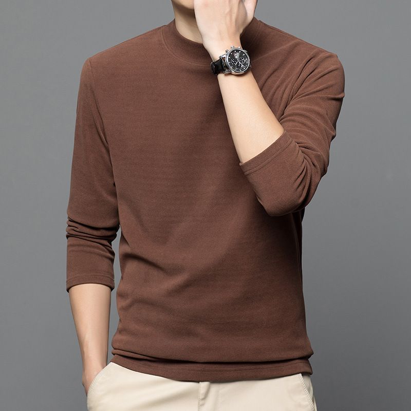 Autumn German velvet semi high neck middle-aged men's hoodie Korean version warm elastic round neck pullover base shirt for men