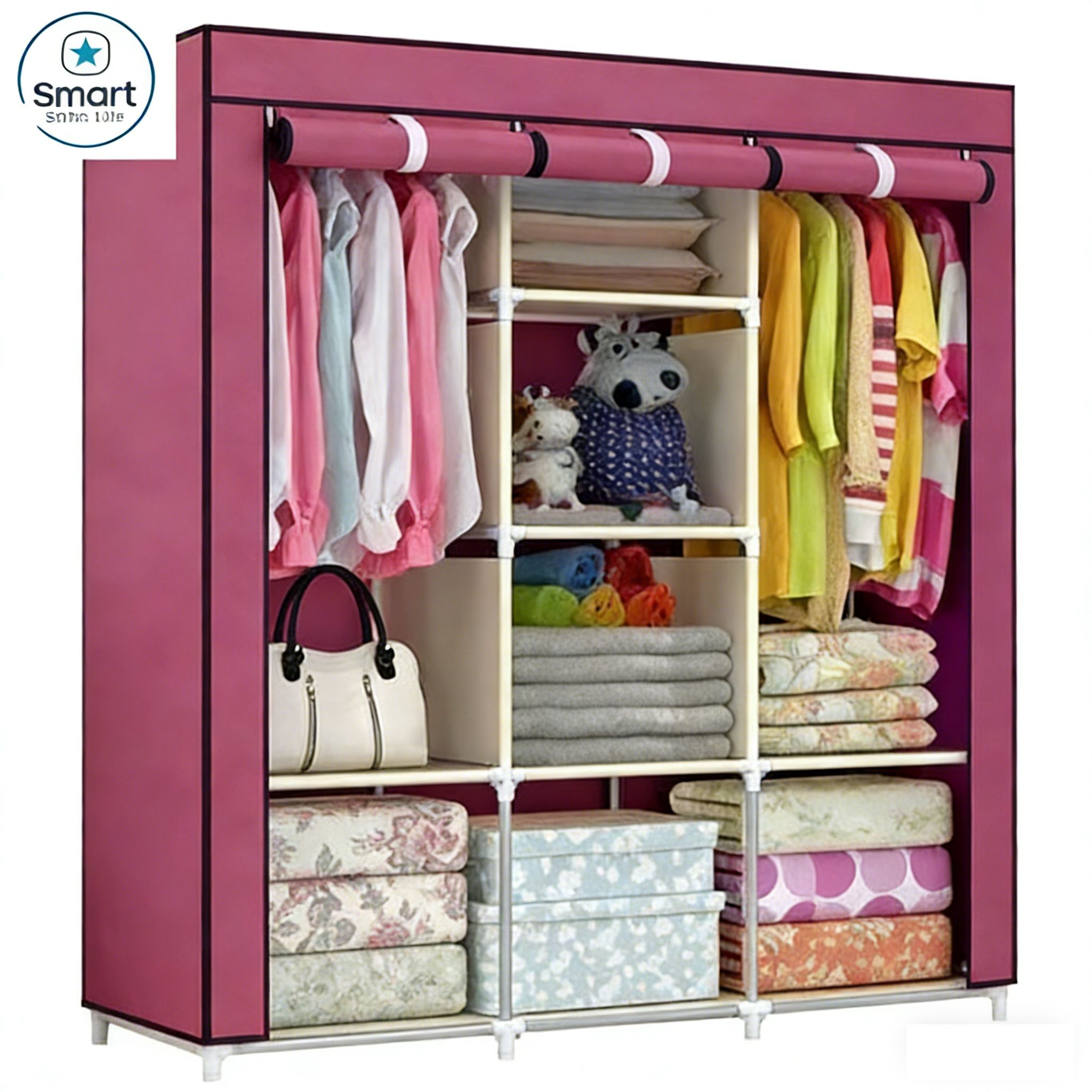 【Promotion】RahaLife 130CM 3 Columns Metallic Wardrobe Large Capacity Closet Organizer Assemble Storage Closet Portable Clothing Rack for Bedroom, Home, Dormitory Sturdy Steel Frame