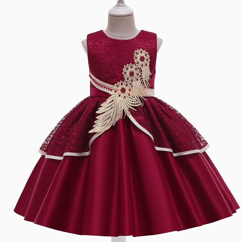 Girls Satin Lace Princess Dress with Bowknot - Kids Runway/Host Flower Girl Formal Gown