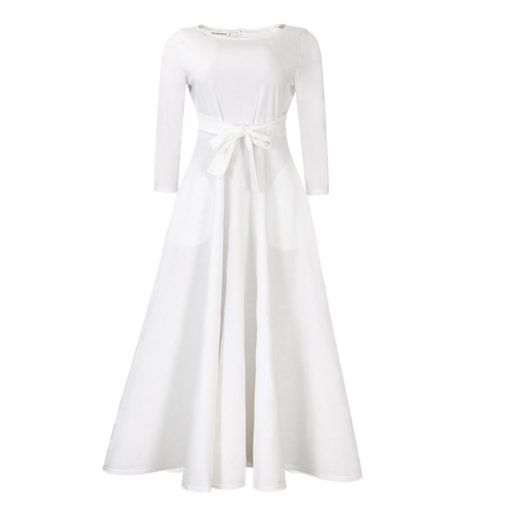 New women's dresses in summer are fashionable, solid and elegant, with round neck in sleeves, waist tie and big skirt. Long dresses are suitable for daily leisure parties, office commuting.