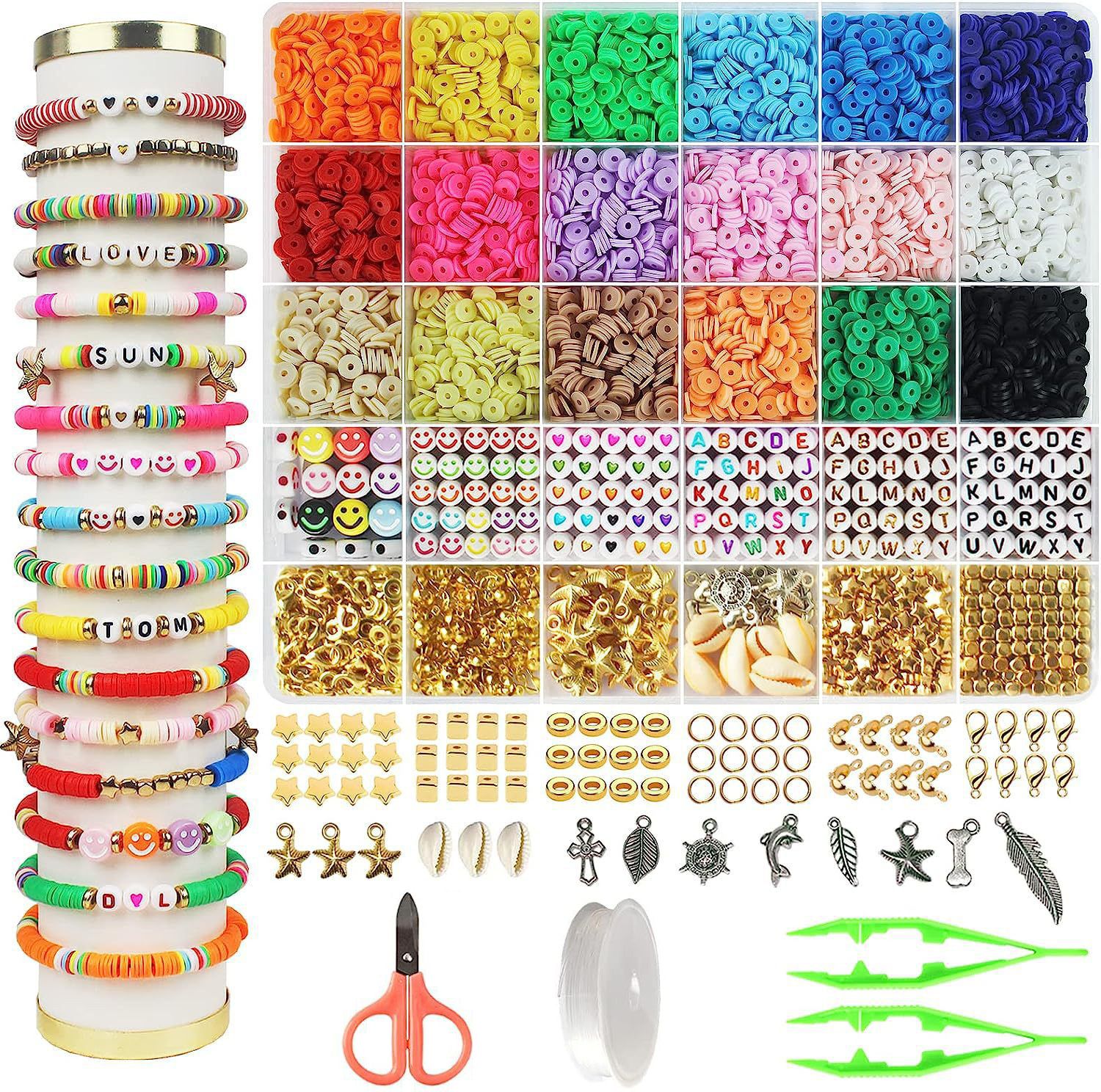 6000 Pcs Clay Beads Bracelet Making Kit Flat Preppy Beads for Friendship Jewelry Making Polymer Heishi Beads with Charms Gifts for Teen Girls Crafts for Girls Ages 8-12