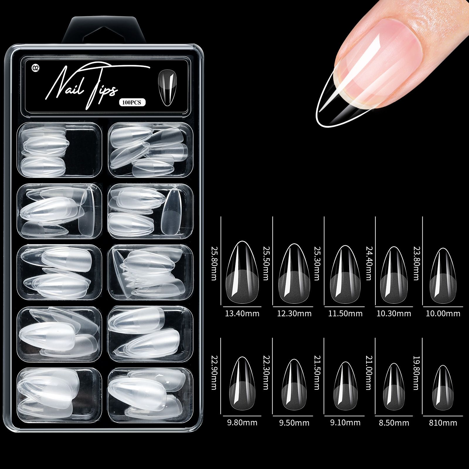 100Pcs Short Almond Half Matte Nail Tips Soft Gel Nail Tips Glossy Full Cover False Nail Tips For Acrylic Nails Manicure Salon E0199