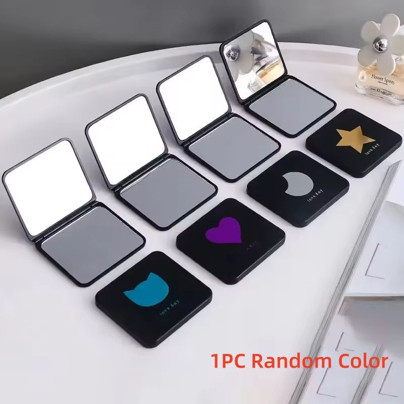 Portable Hand Mirrors Double-sided Compact Mirror Pocket Cosmetic Mirror Foldable Makeup Mirror Mini Square Makeup Vanity E0603