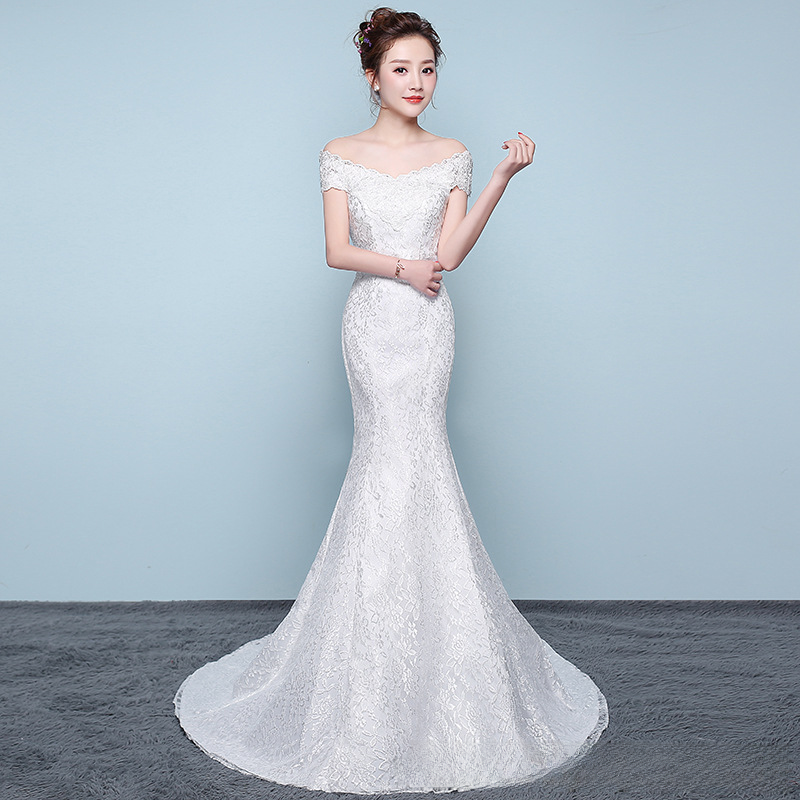 Waisted fishtail wedding dress, small tail wedding dress, fishtail wedding dress, simple slimming plus size wedding dress