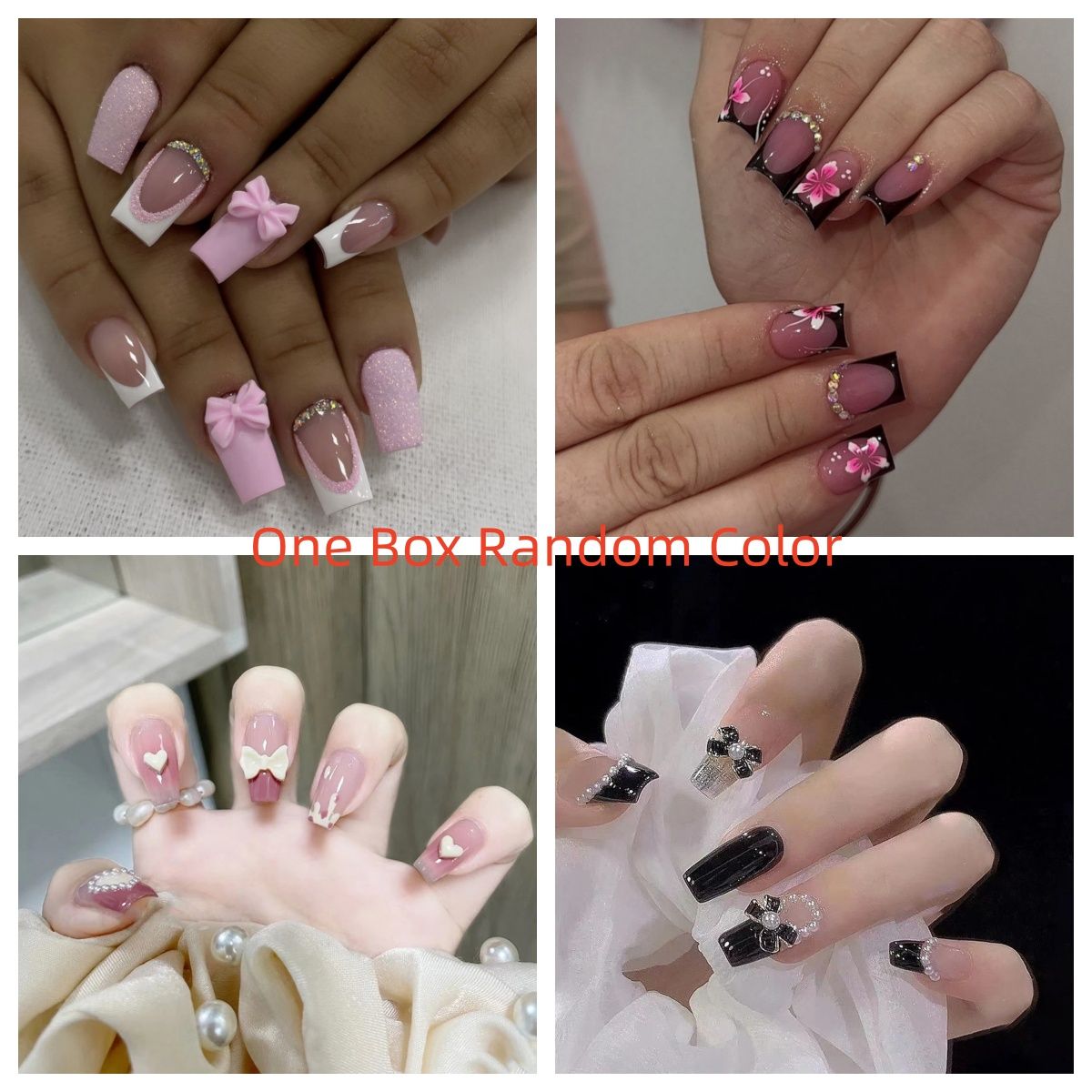 24Pcs Pink Leopard Print French Tips False Nails Short Square Head 3D Black Bowknot Fake Nails Acrylic Full Cover Press on Nails E0163