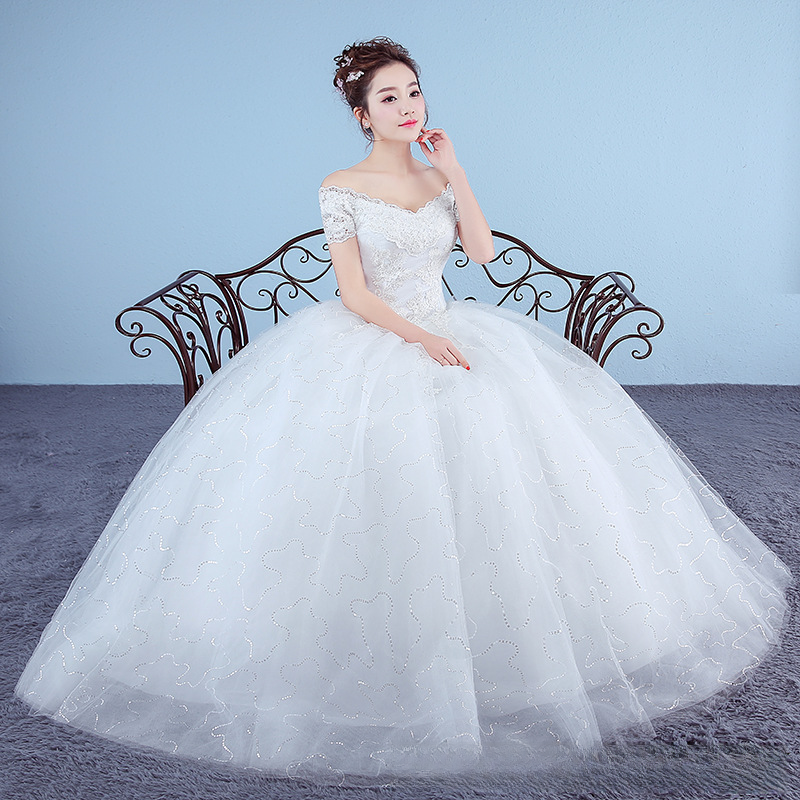 One shoulder wedding dress, bride's floor-length wedding dress, plus size Korean style maternity wedding dress