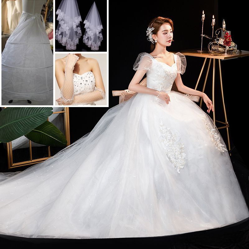 Wedding Dress Bridal Wedding Dress 2025 New Floor-length Slim V-neck Wedding Dress One Shoulder