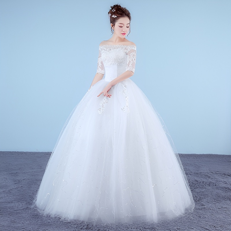 Wedding Dress 2025 New Floor-length Korean Wedding Dress Large Size One Shoulder Korean Slim Long Simple Puff Skirt