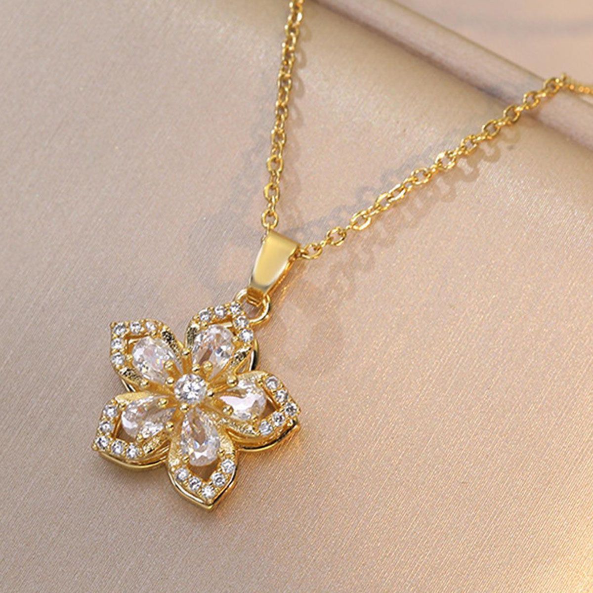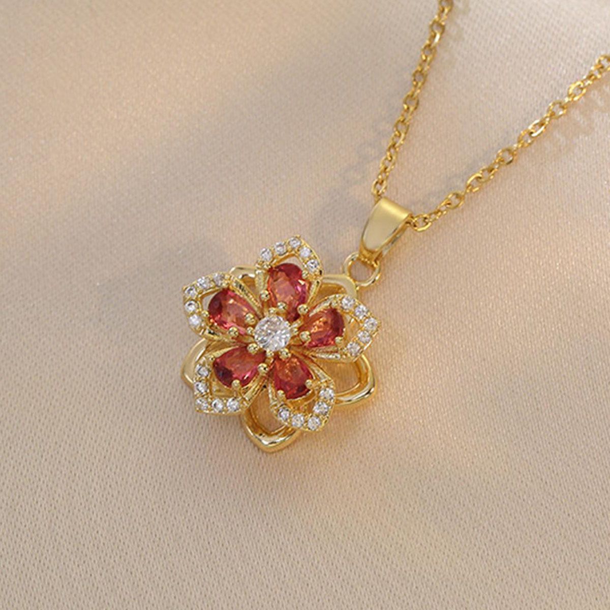 New elegant flower pendant necklace, rotatable necklace, women's Instagram niche, versatile and light luxury collarbone chain accessory