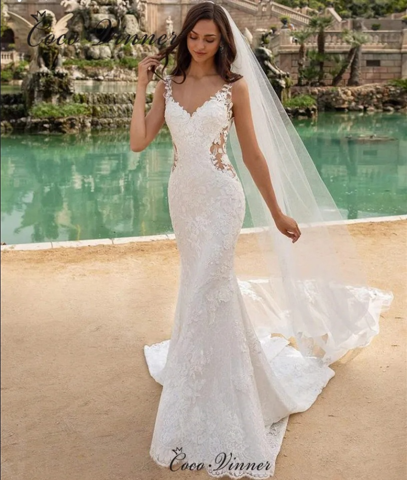 Wedding dress 2025 new style bridal lace slim fit deep v-neck light tail large backless cover arms temperament forest slim fit