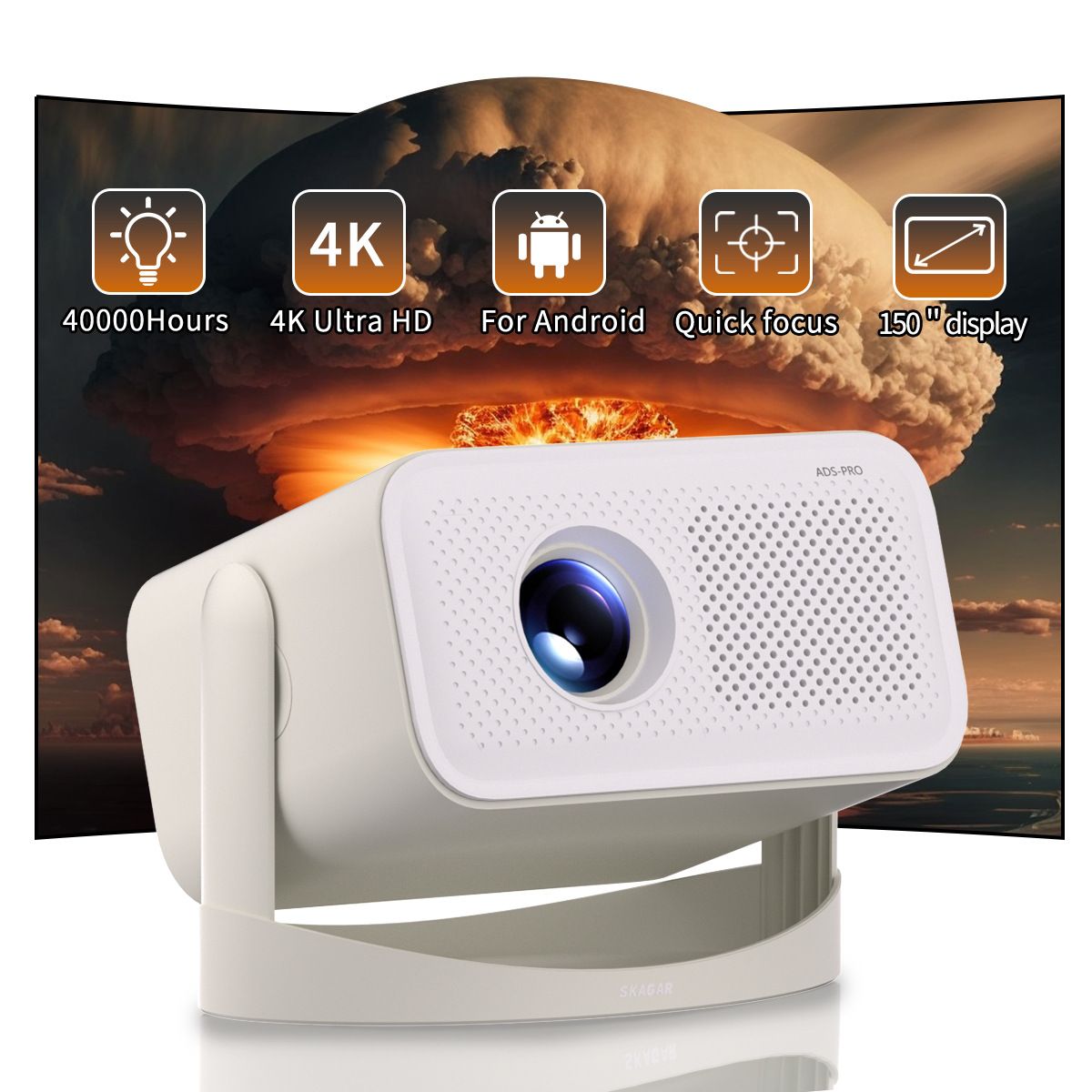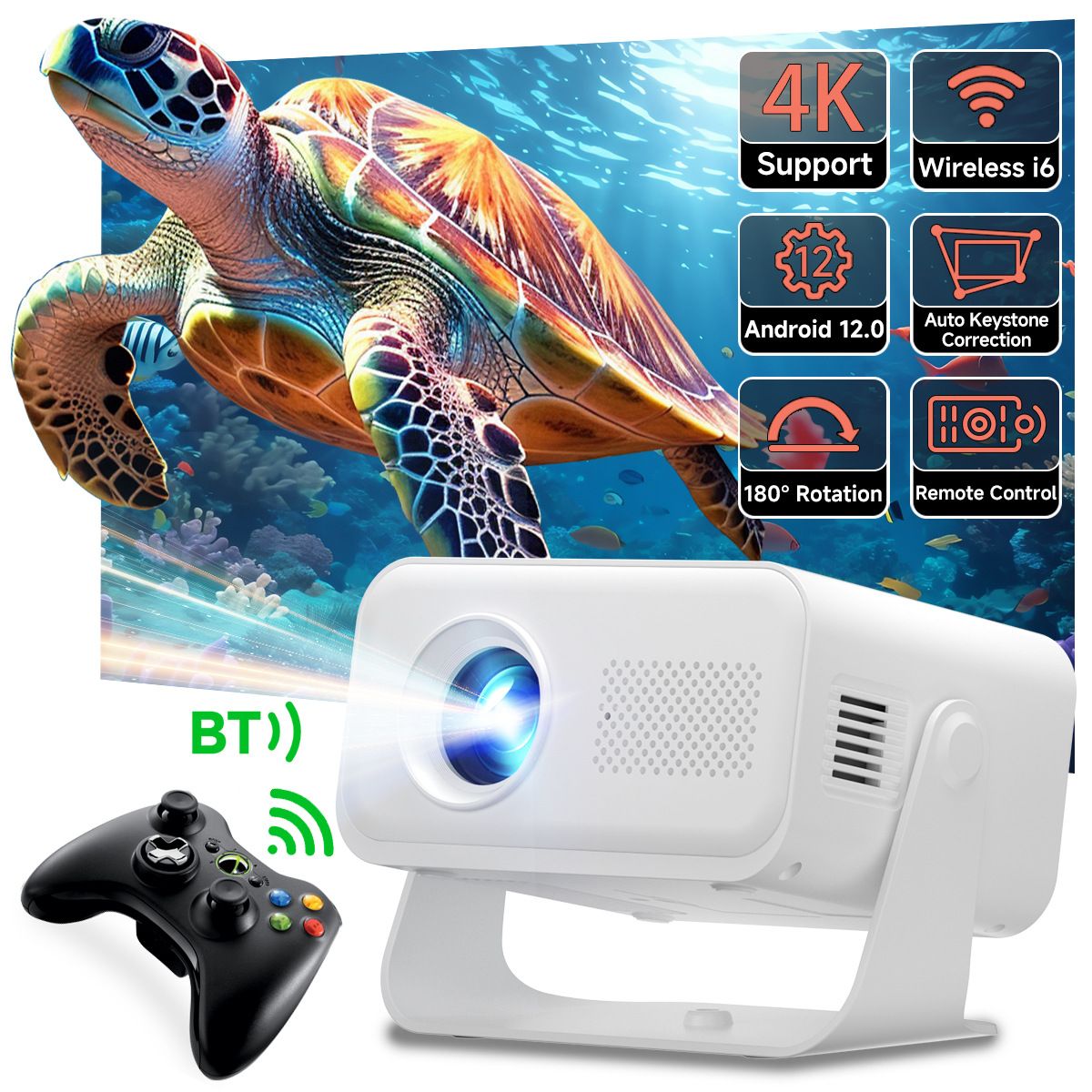 [Black Friday Offer]KASSELY Mini Projector, Portable Projector for Bedroom with WiFi 6 and Bluetooth, FHD1080P 4K Support, Auto Keystone Correction Compatible with Laptop/PC/Smartphone (White)