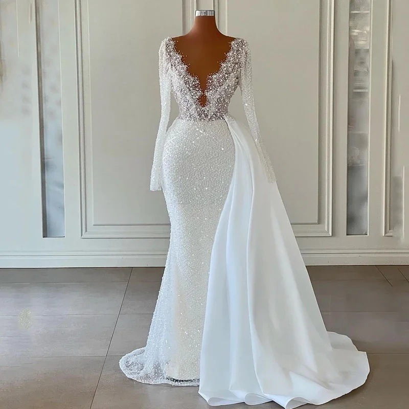 2025 summer new one-shoulder European and American long tail main wedding dress white