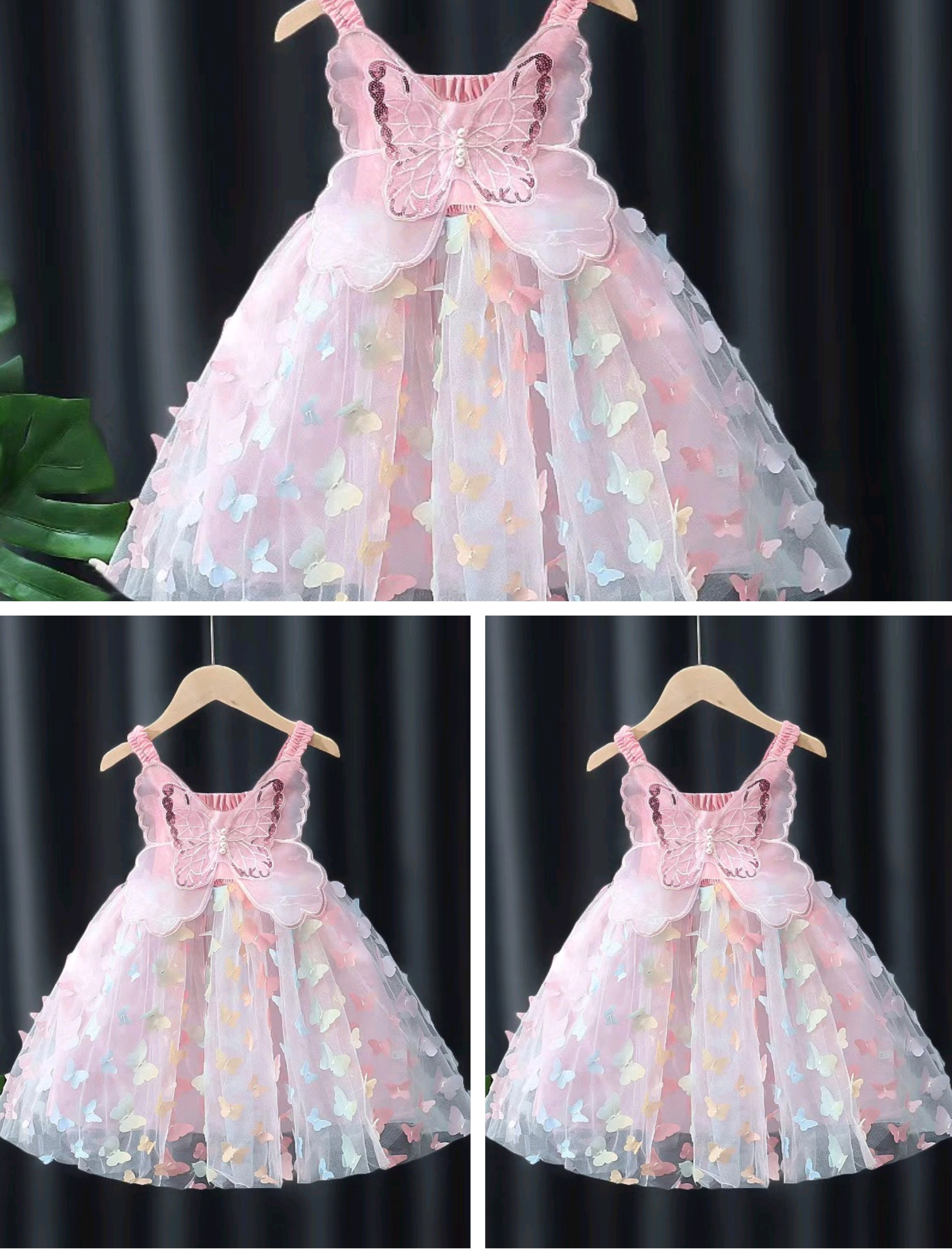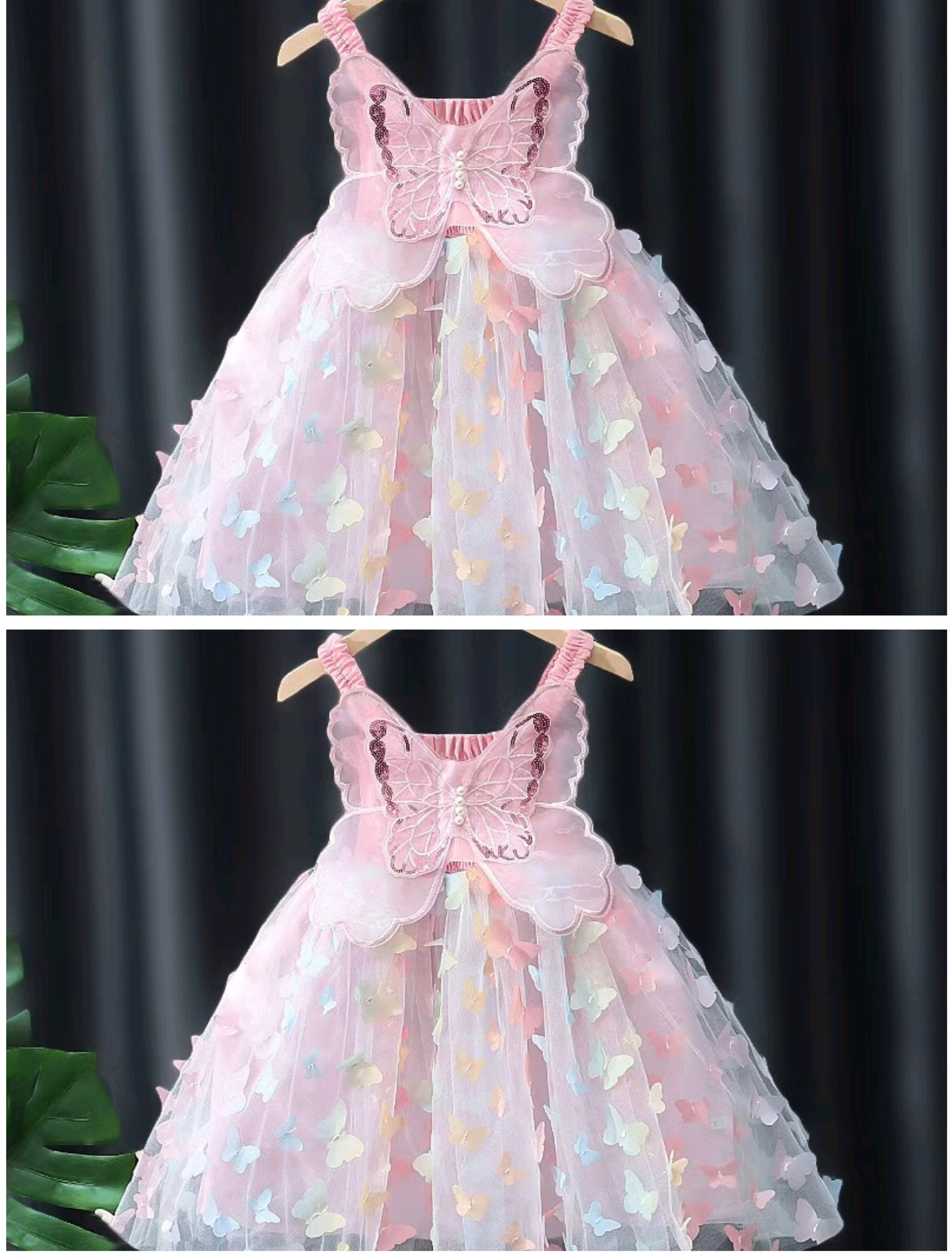 Girls' Summer Children's Three Dimensional Bow Girls' Princess Mesh Vest Pearl Strap Dress
