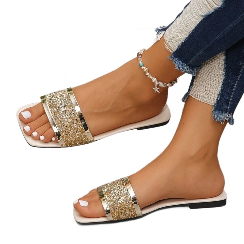 Summer Women Slippers Shoes Fashion Flat Open Toe Slides Women Luxury Mules Beach Slippers Square Toe Casual Sandals Zapatos De Mujer Breathable And Durable Flip-flops