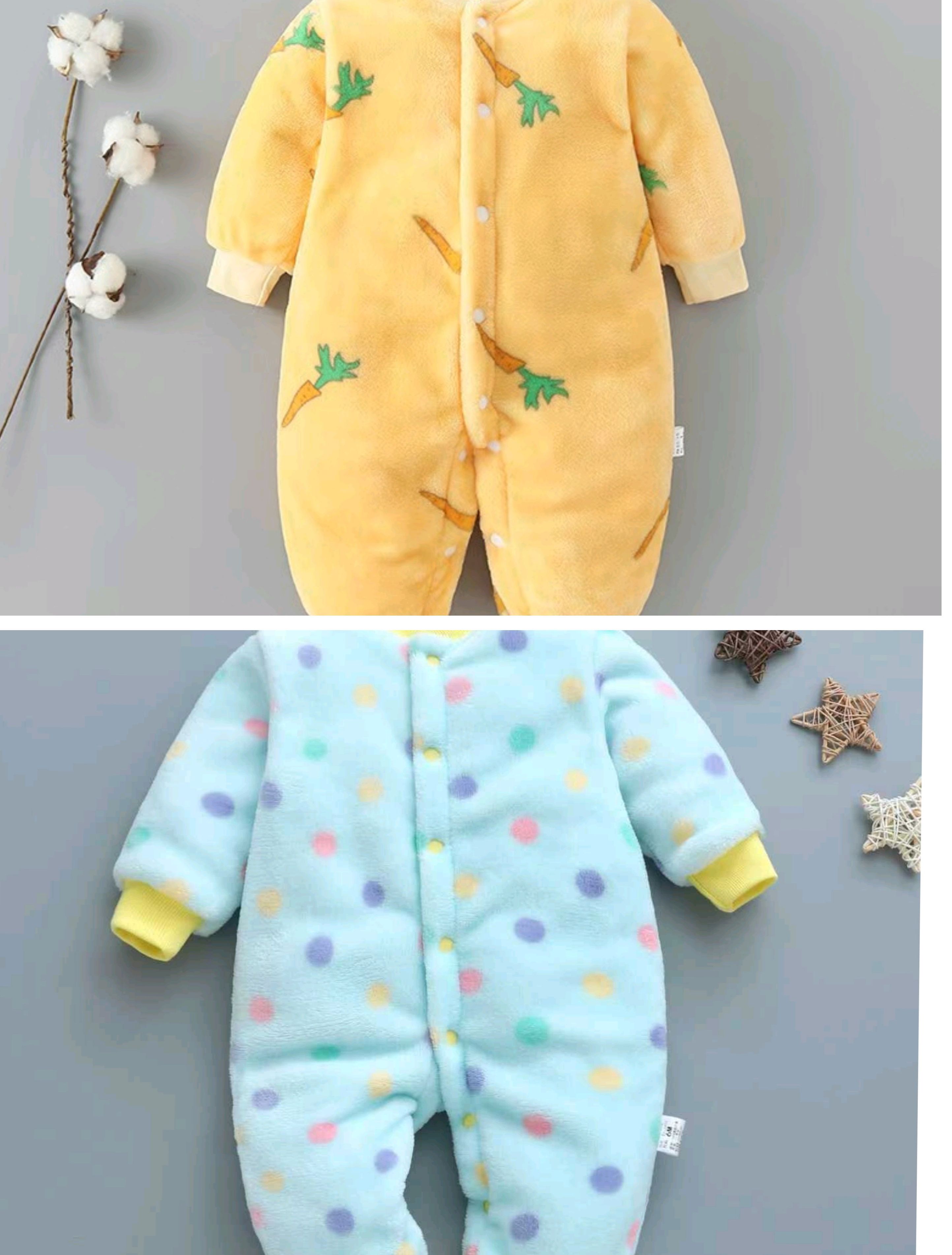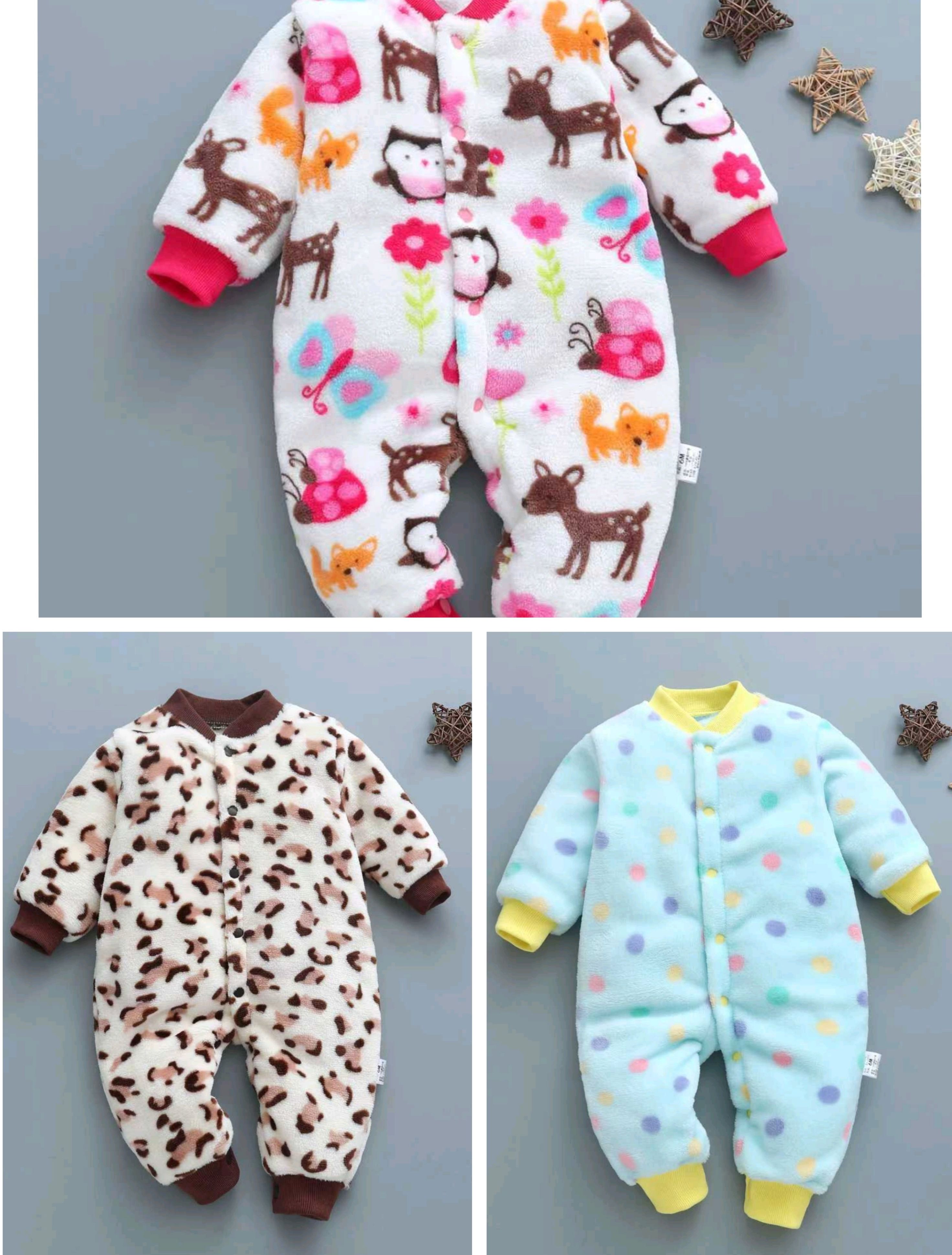 Baby clothing for spring, autumn, winter, short sleeved, thick fitting, men's and women's baby flannel warm jumpsuit, pajamas