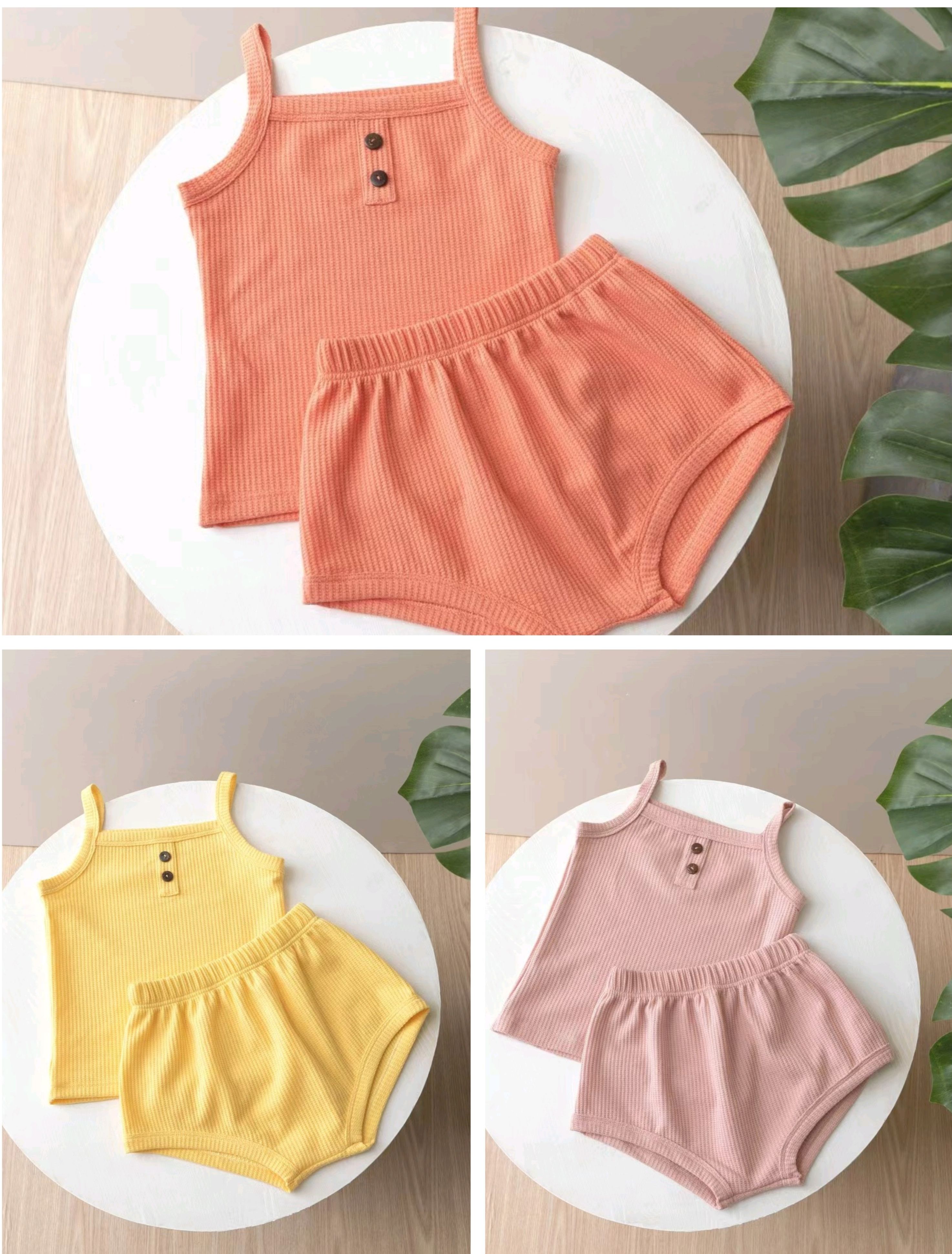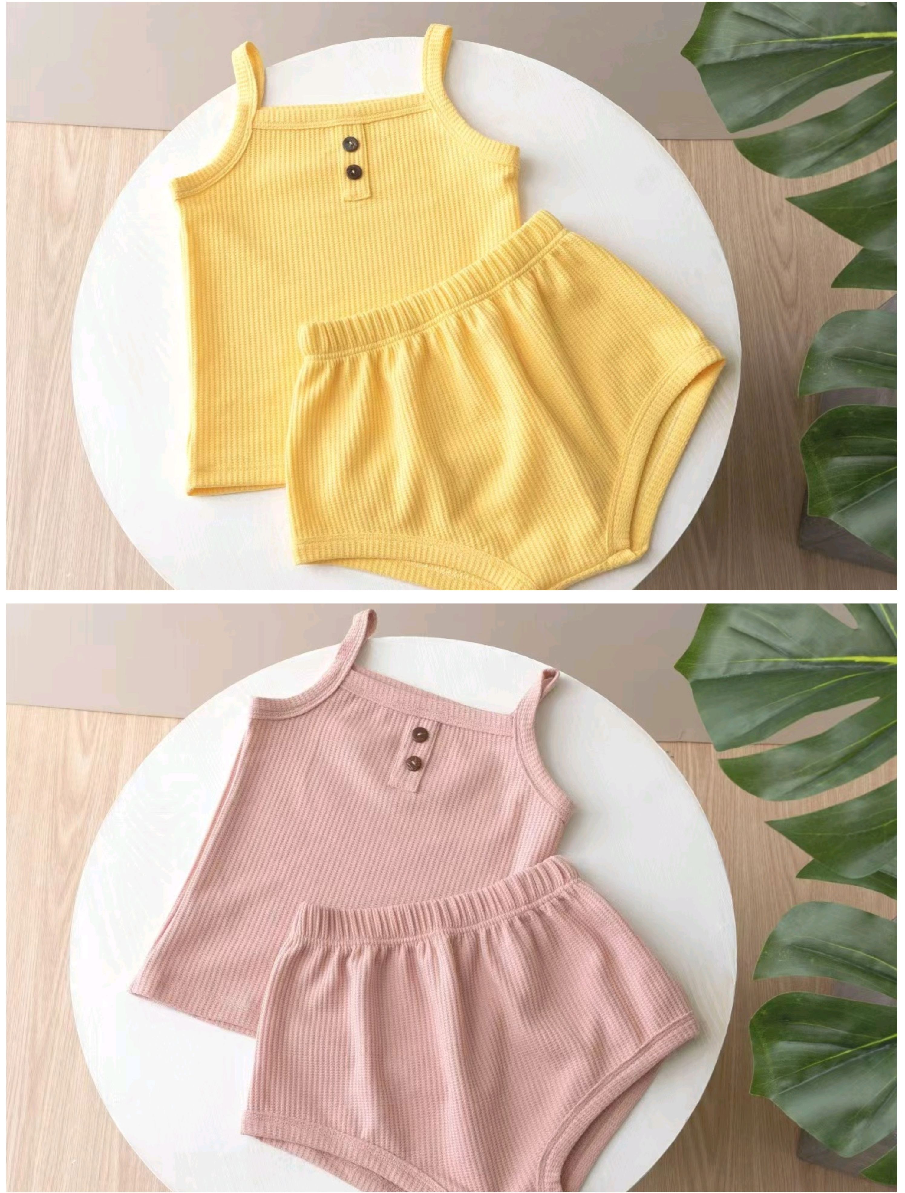Children's summer new baby camisole vest set, girls' Korean children's clothing, baby triangle shorts