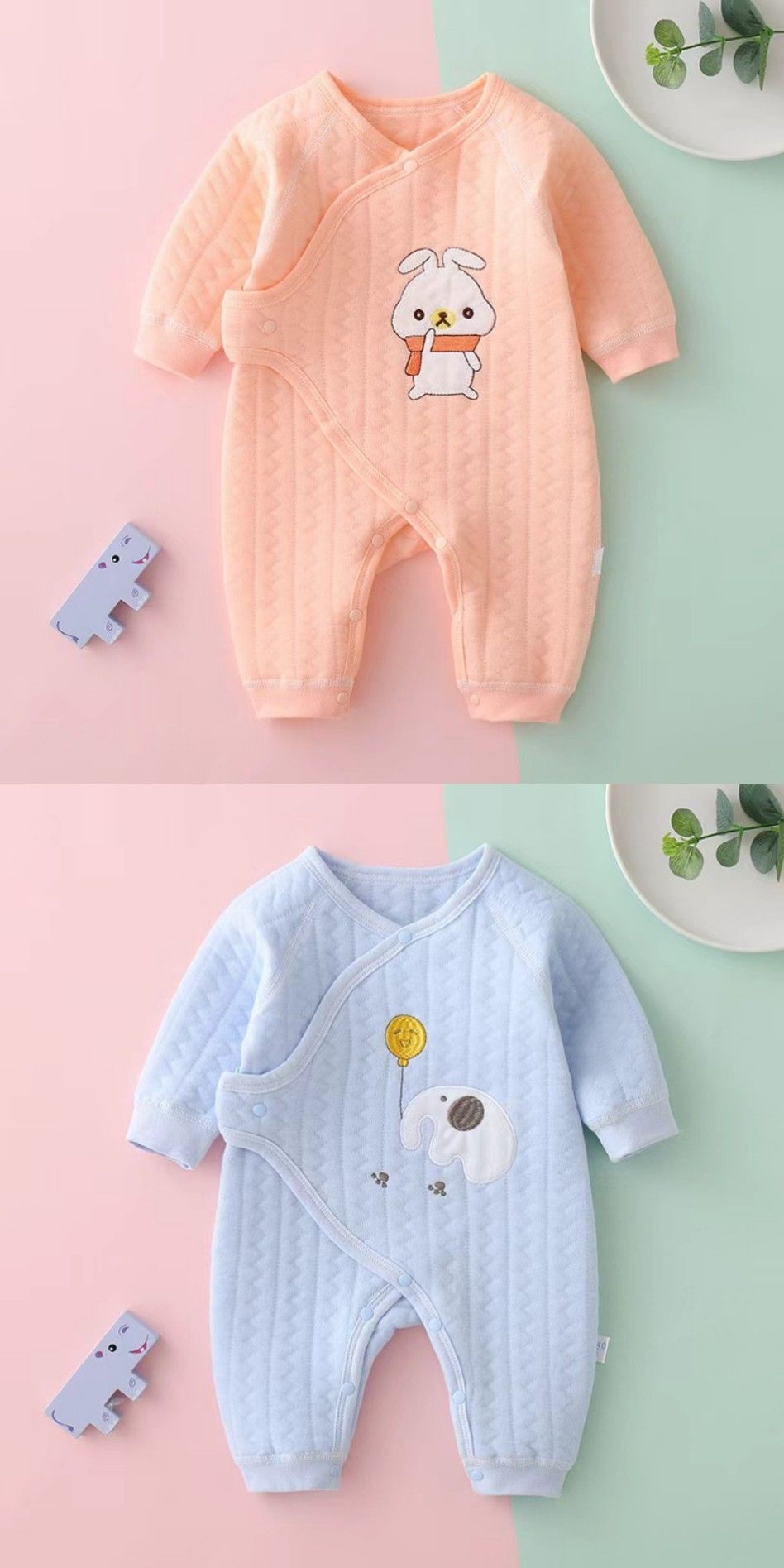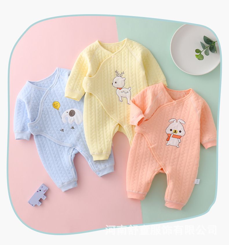 Three layer warm jumpsuit for infants and young children, autumn and winter newborn crawling suit, solid color boneless collar