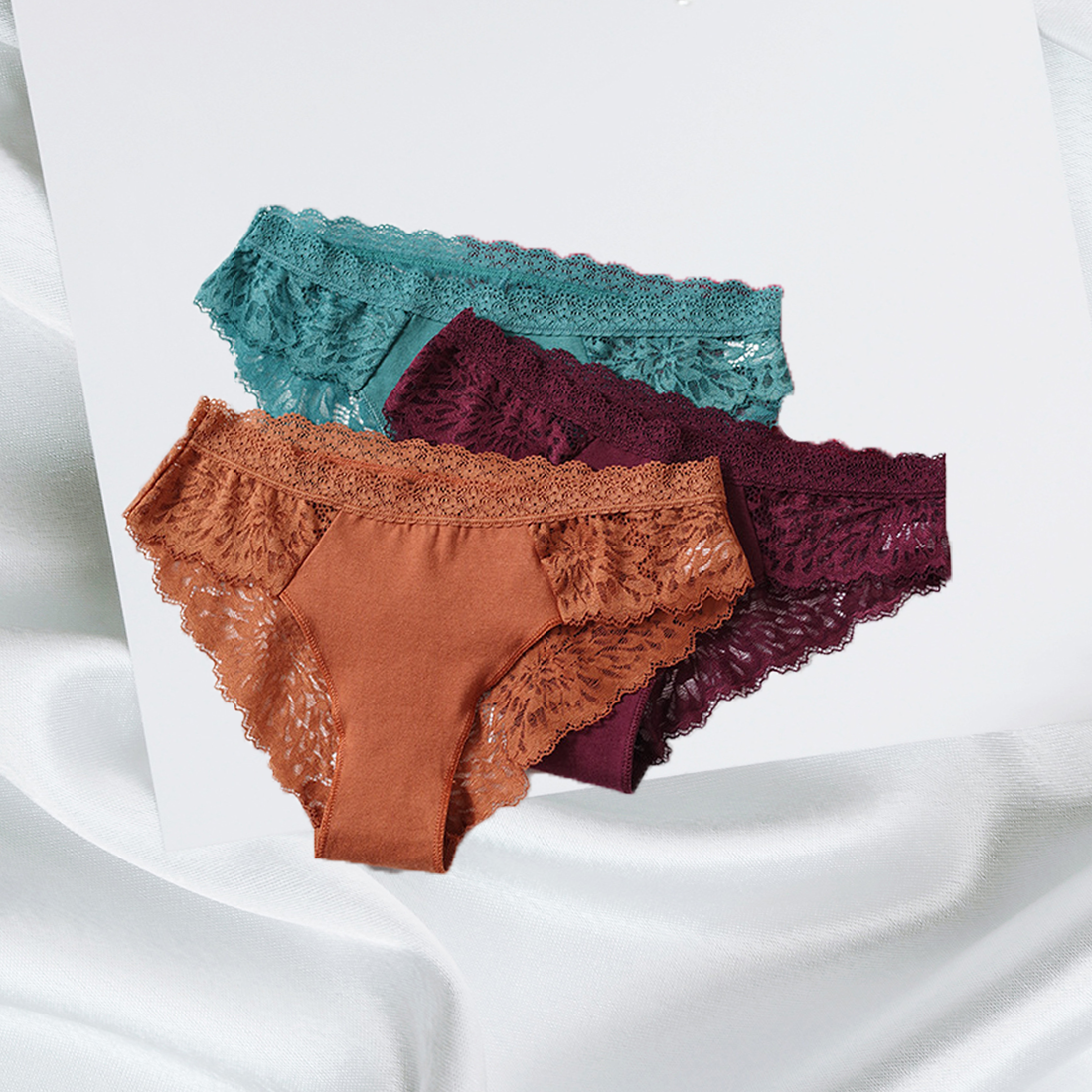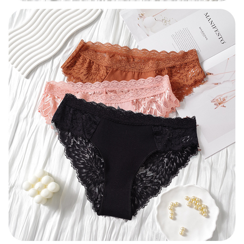 3Pcs Women's Sexy Lace Flower Thongs Stylish T-Pants With Metal Ring Seamless No Trace Embroidery Trim Soft Comfortable Antibacterial Breathable High Elastic Cotton Crotch