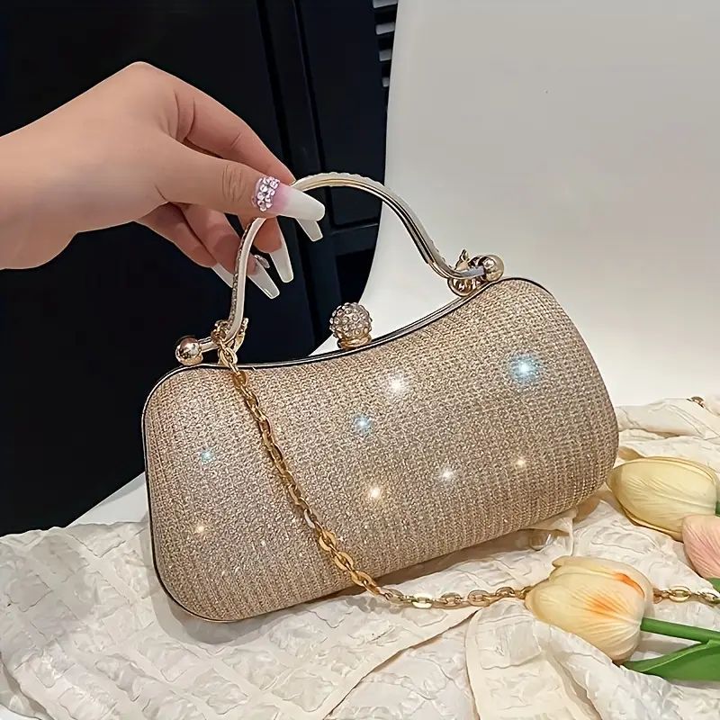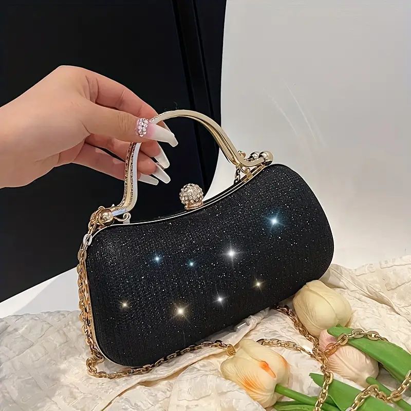 Luxury Diamond Detail Evening Clutch Bag Women Sparkly Party Purse with Chain Strap - Elegant Wedding Handbag Kikapu Cha Sherehe for Ladies