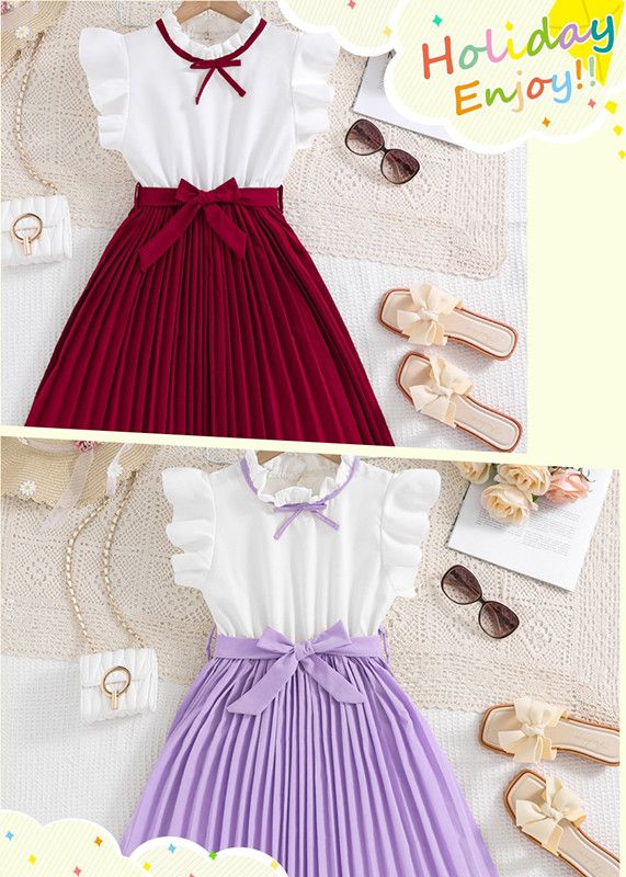 Girls' dress, summer new style, stylish flying sleeves, color blocked pleated children's temperament princess dress