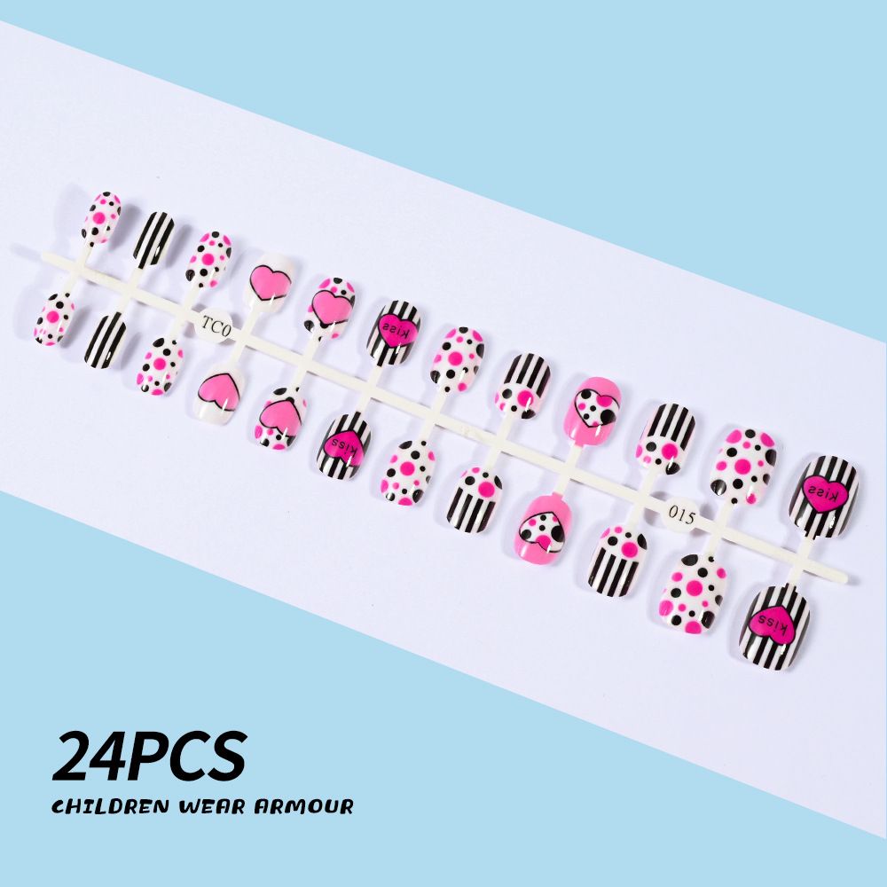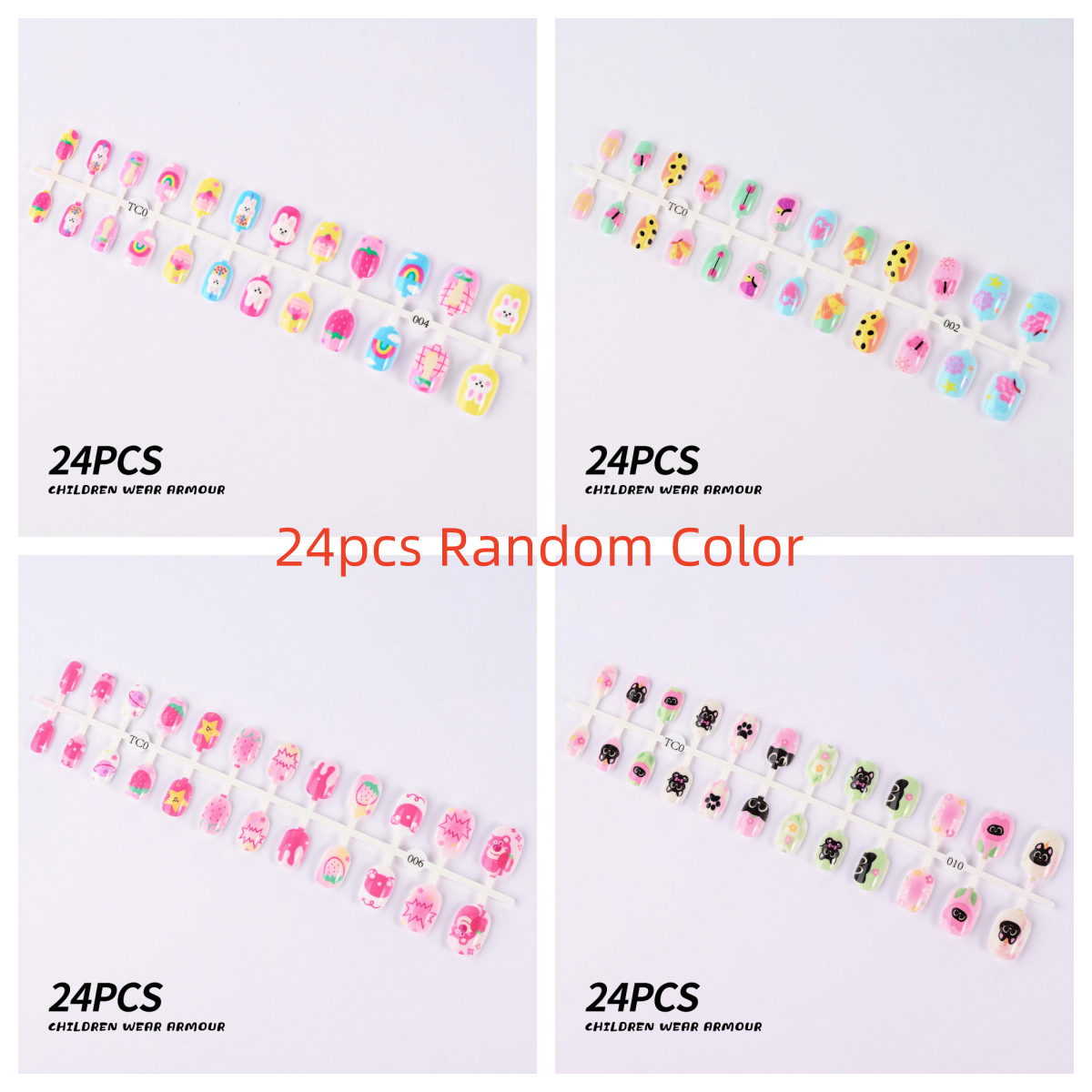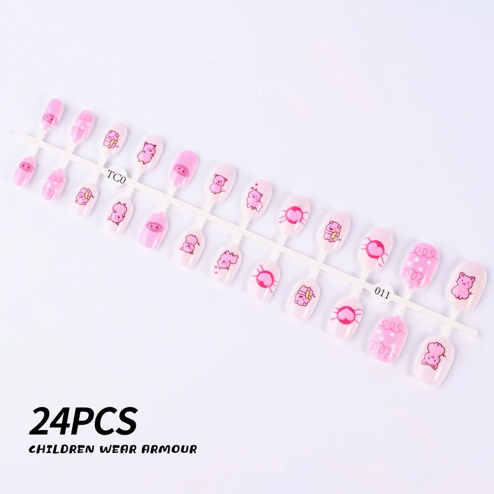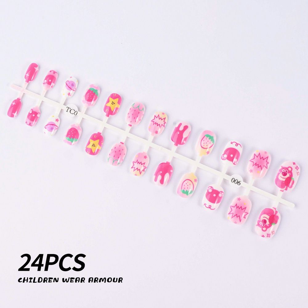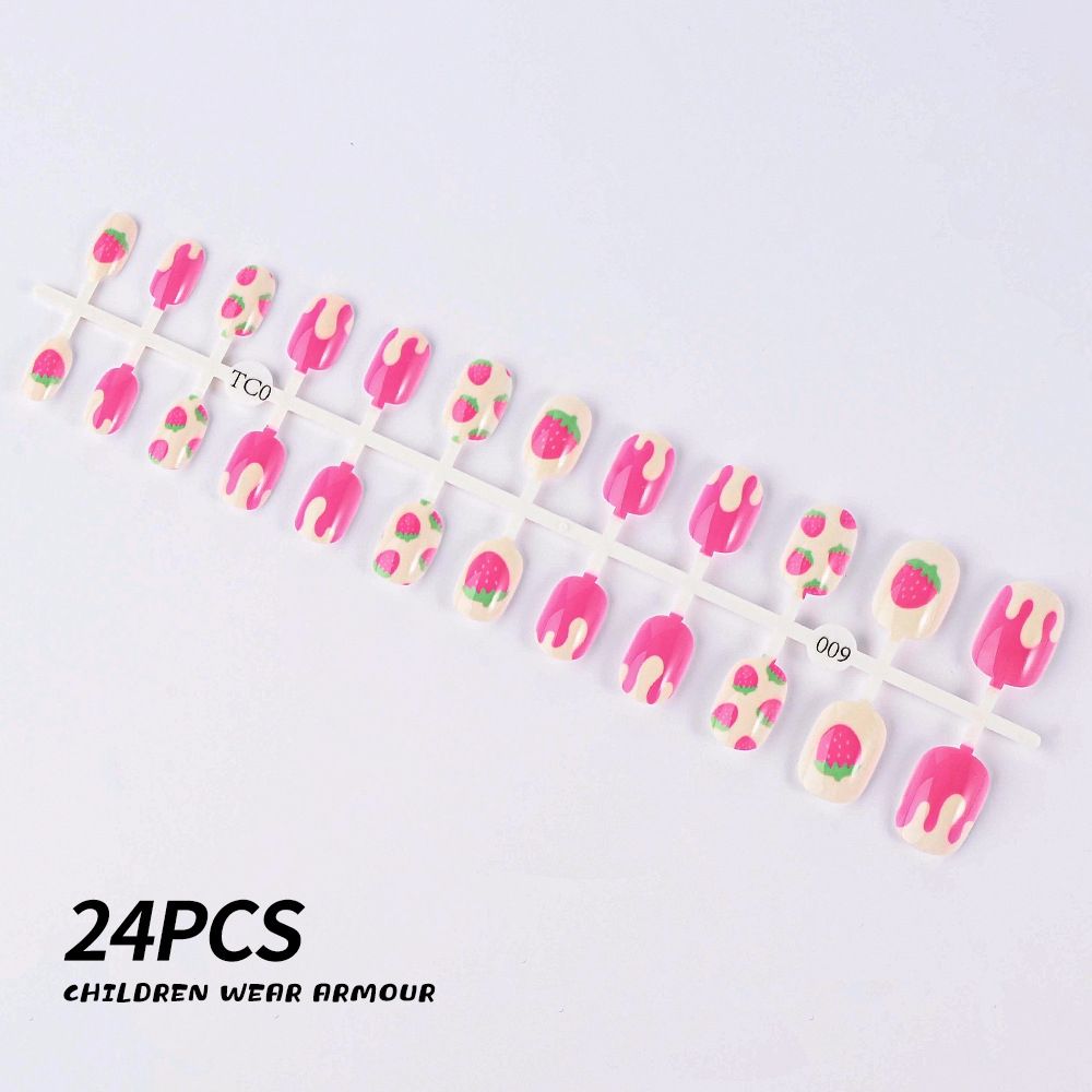 24Pcs/Strip Pink Detachable Child False Nails Tip Kawaii Cartoon Strawberry Acrylic Artificial Full Cover Press On Nail for Girl E0103A