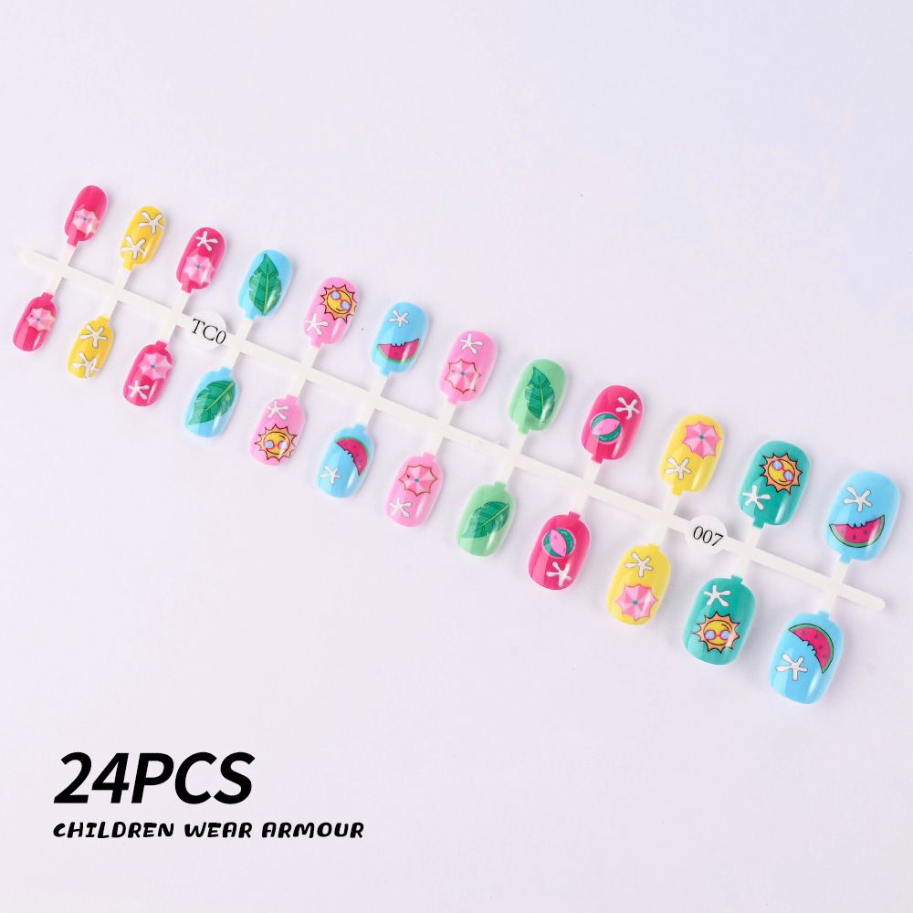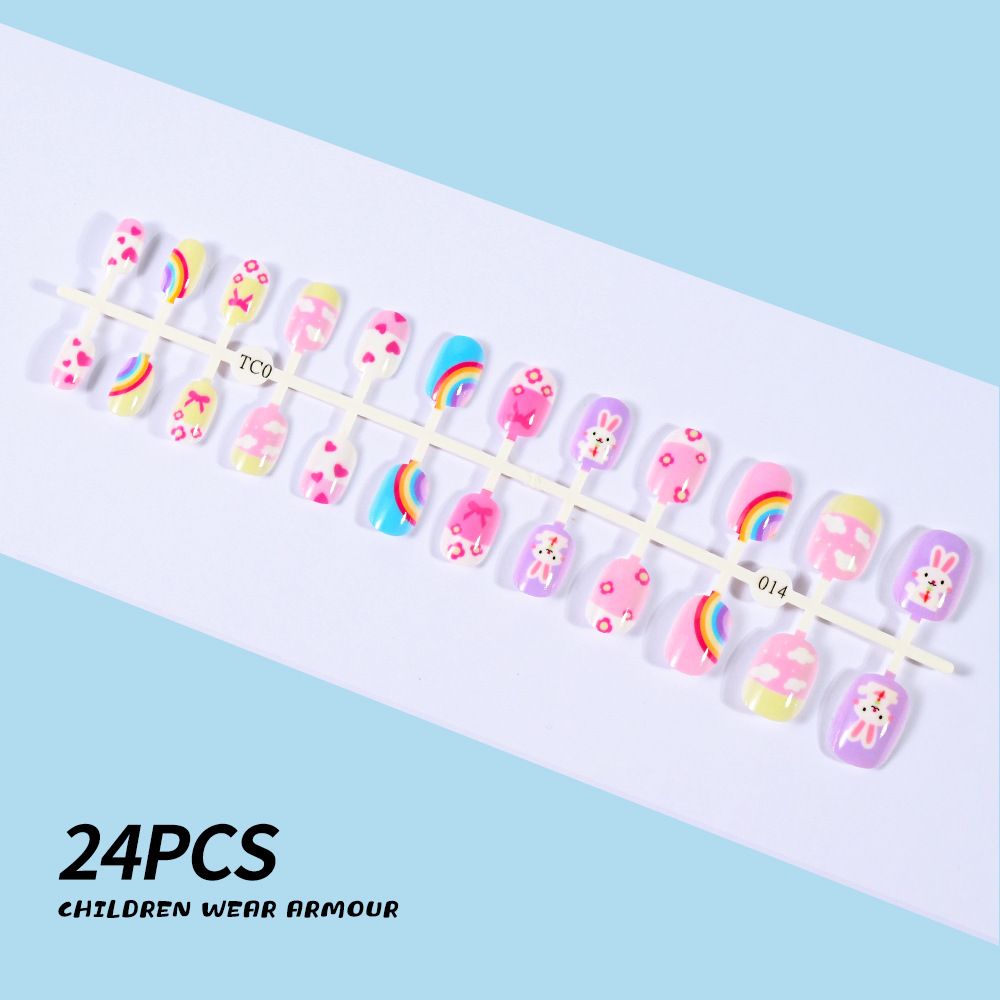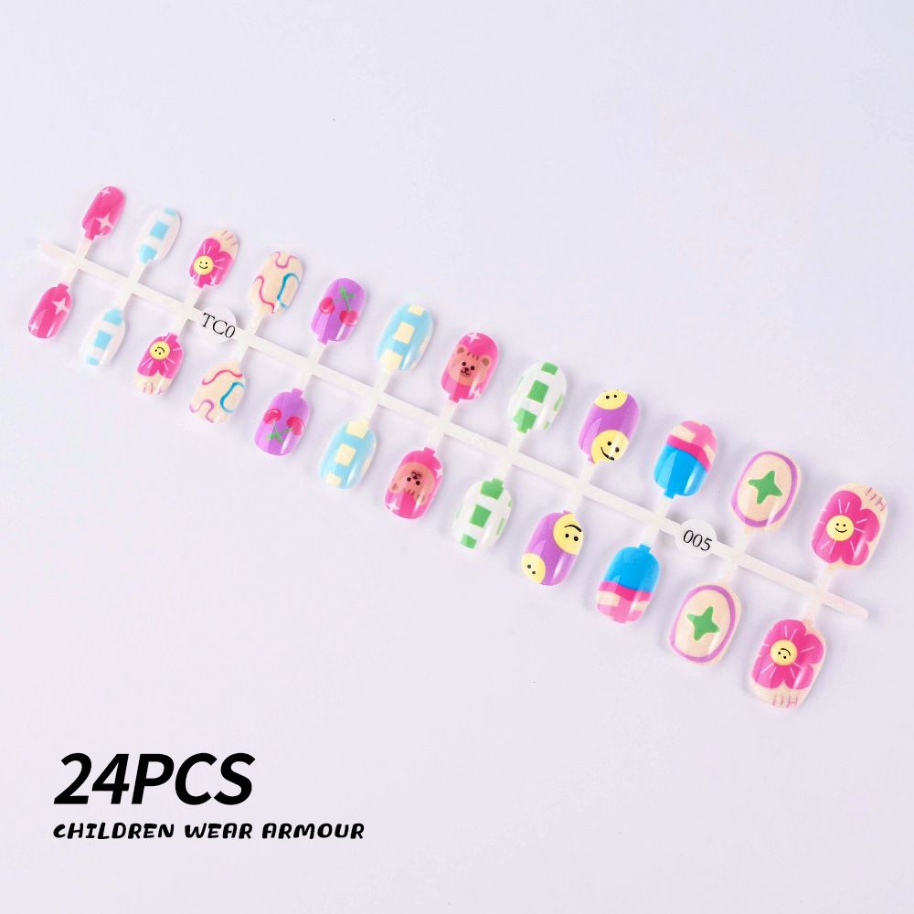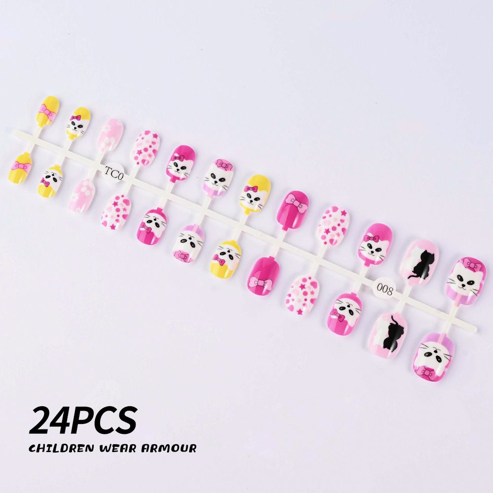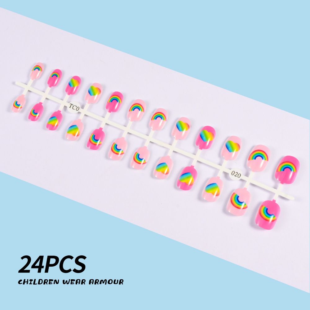 24Pcs/Strip Pink Detachable Child False Nails Tip Kawaii Cartoon Strawberry Acrylic Artificial Full Cover Press On Nail for Girl E0103A