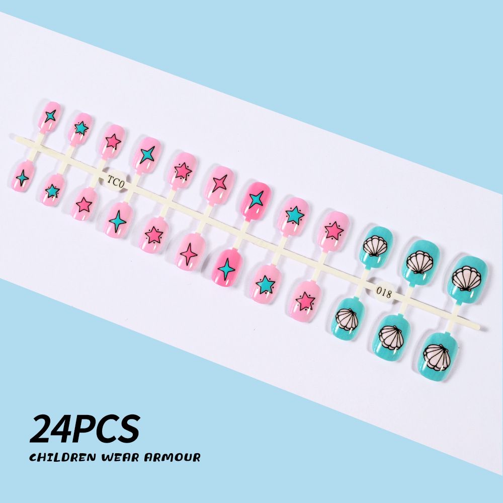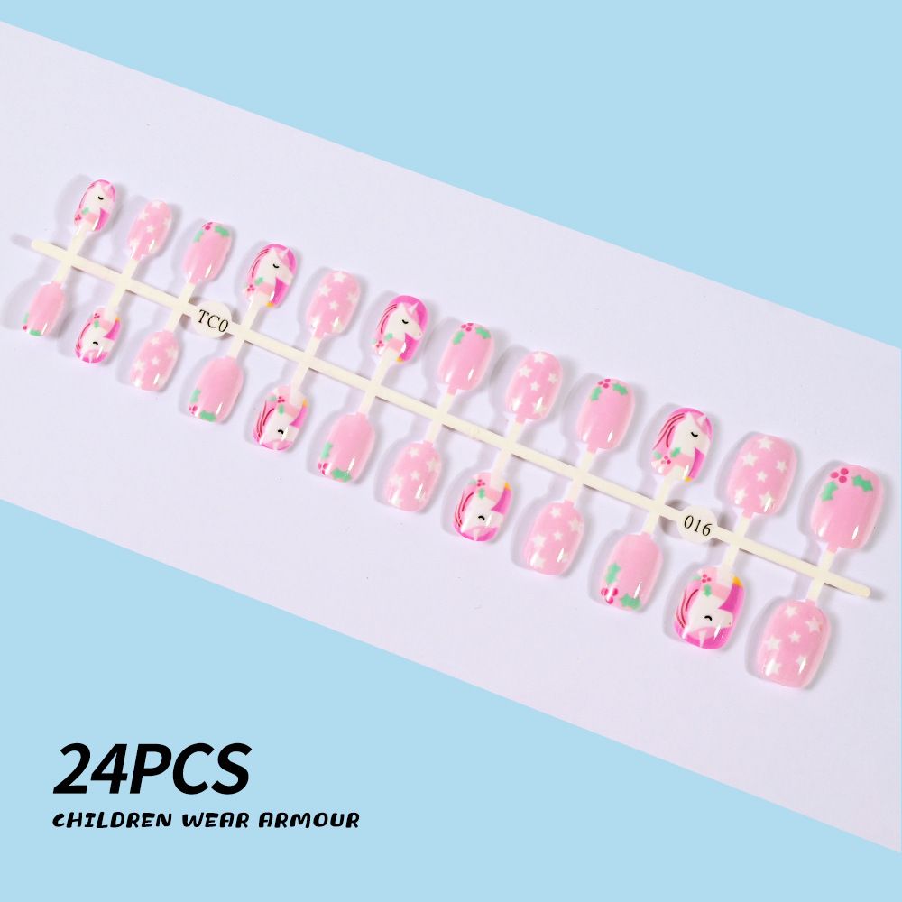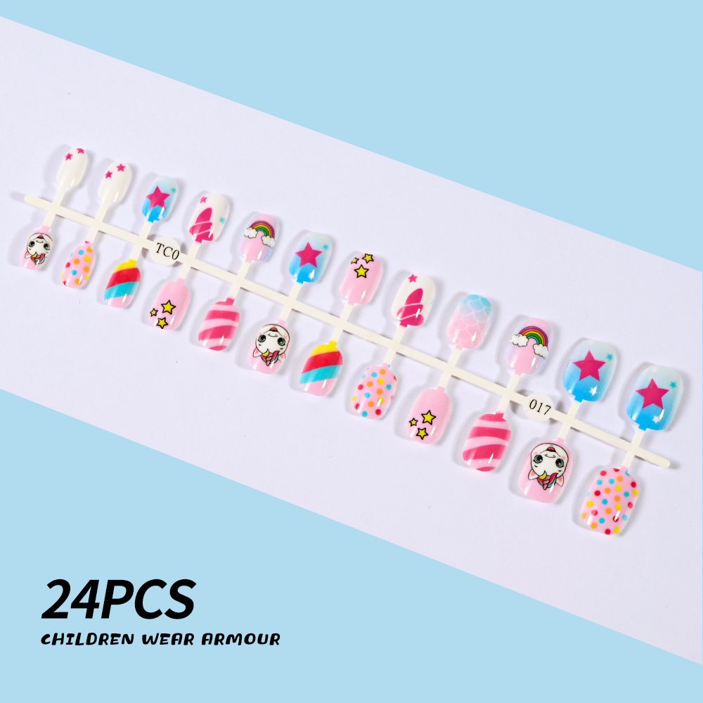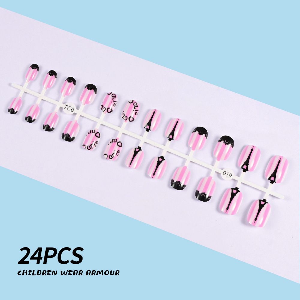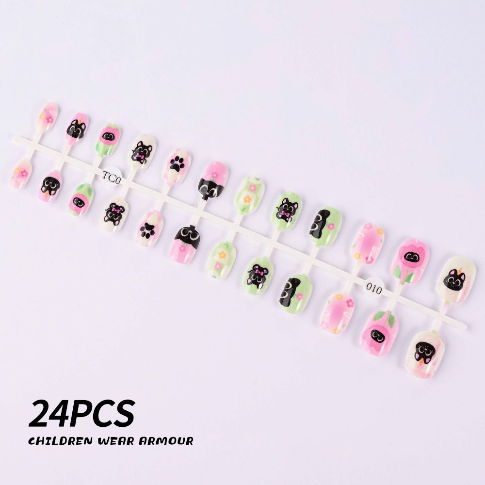 24Pcs/Strip Pink Detachable Child False Nails Tip Kawaii Cartoon Strawberry Acrylic Artificial Full Cover Press On Nail for Girl E0103A