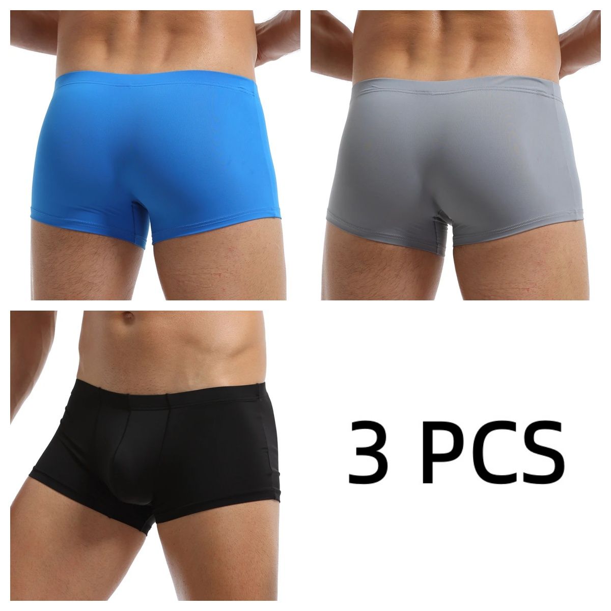 3PCS Men's Ice Silk Boxers Breathable Panties Male Large Ultra Thin Boxer Shorts Sexy Underwear Ice Silk Man Underwear Boxer Metal Fiber Antistatic Men Underpants Seamless Cut Hem Men's Panties Boxer