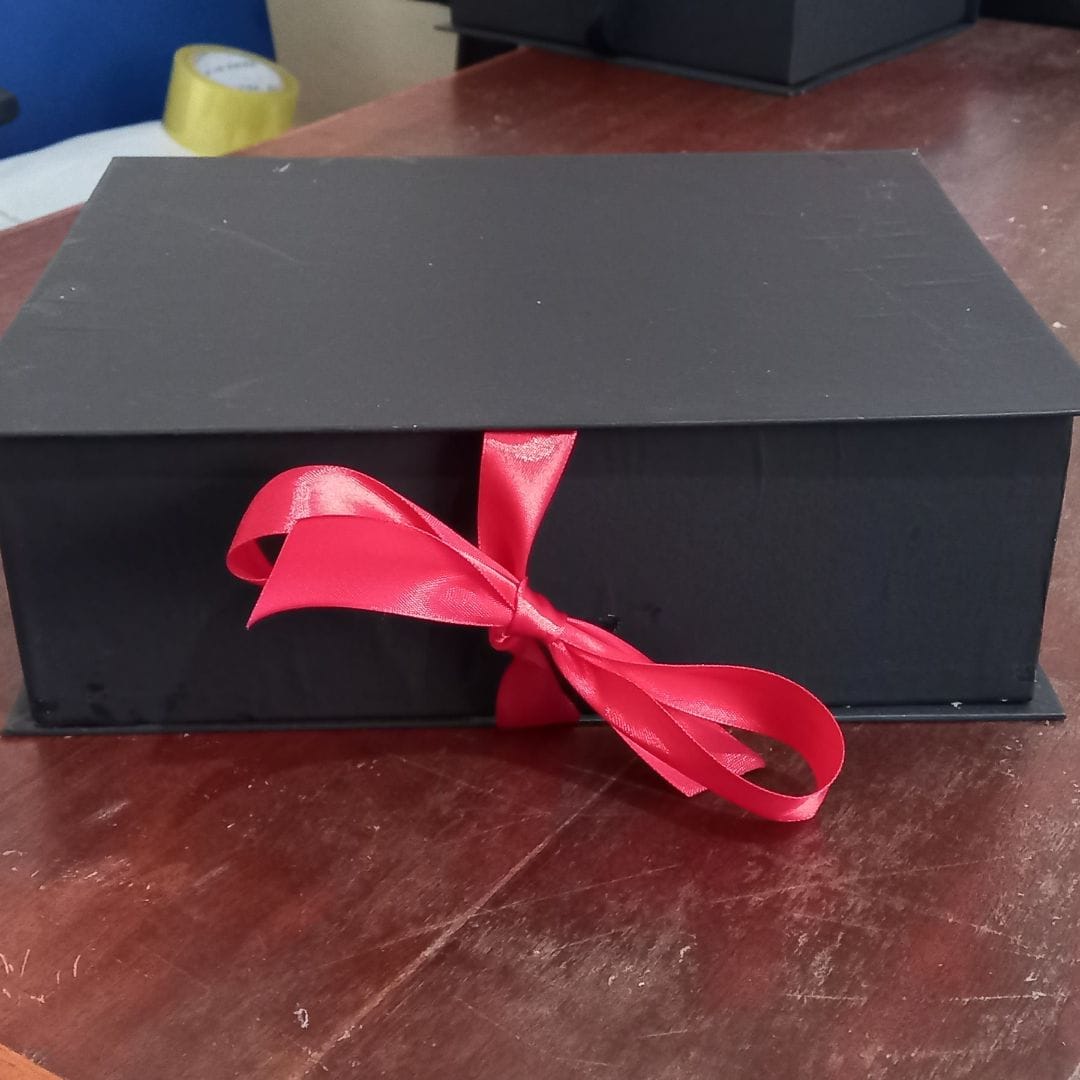 Elegant 11 x 9 x 3.5 Inch Gift Box with Shredded Paper & Permanent Ribbon - Flip to Open