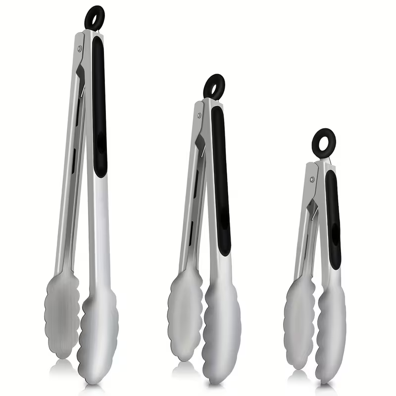 Professional Heavy-Duty Cooking Tongs|Easy Store& Easy-Clean | Heat-Resistant Stainless Steel with Lock & Silicone Grip for BBQ, Camping & Picnic